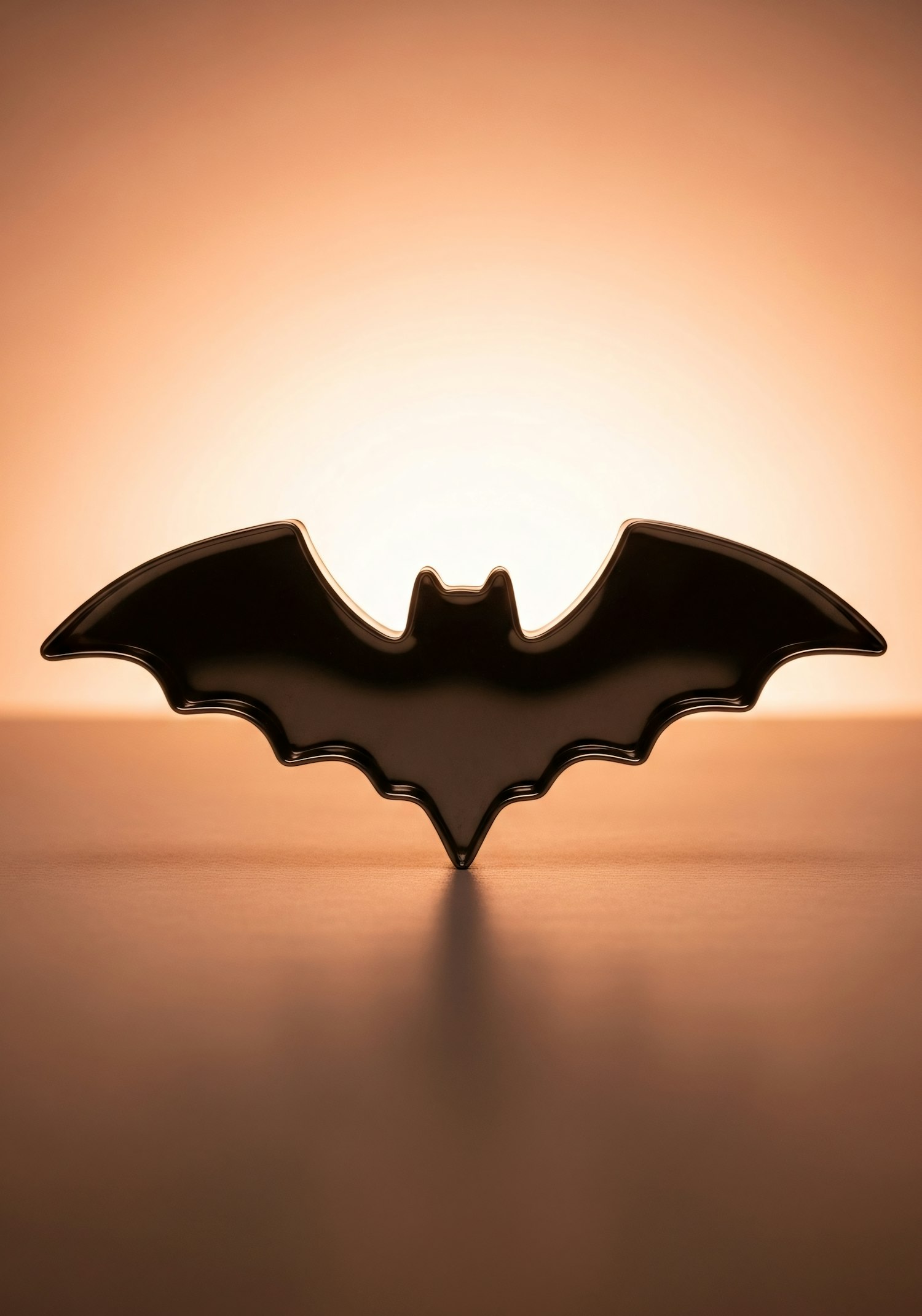 A black bat silhouette against a glowing orange background, creating a dramatic and minimalistic visual effect.
