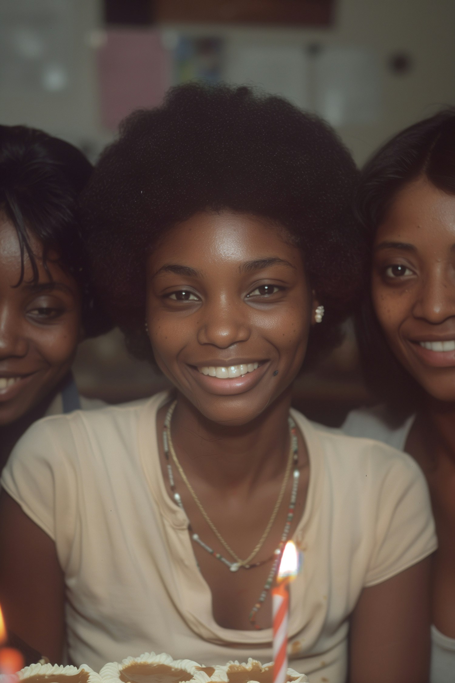 Three smiling women celebrate with a cake and candles, capturing a joyful moment of togetherness.