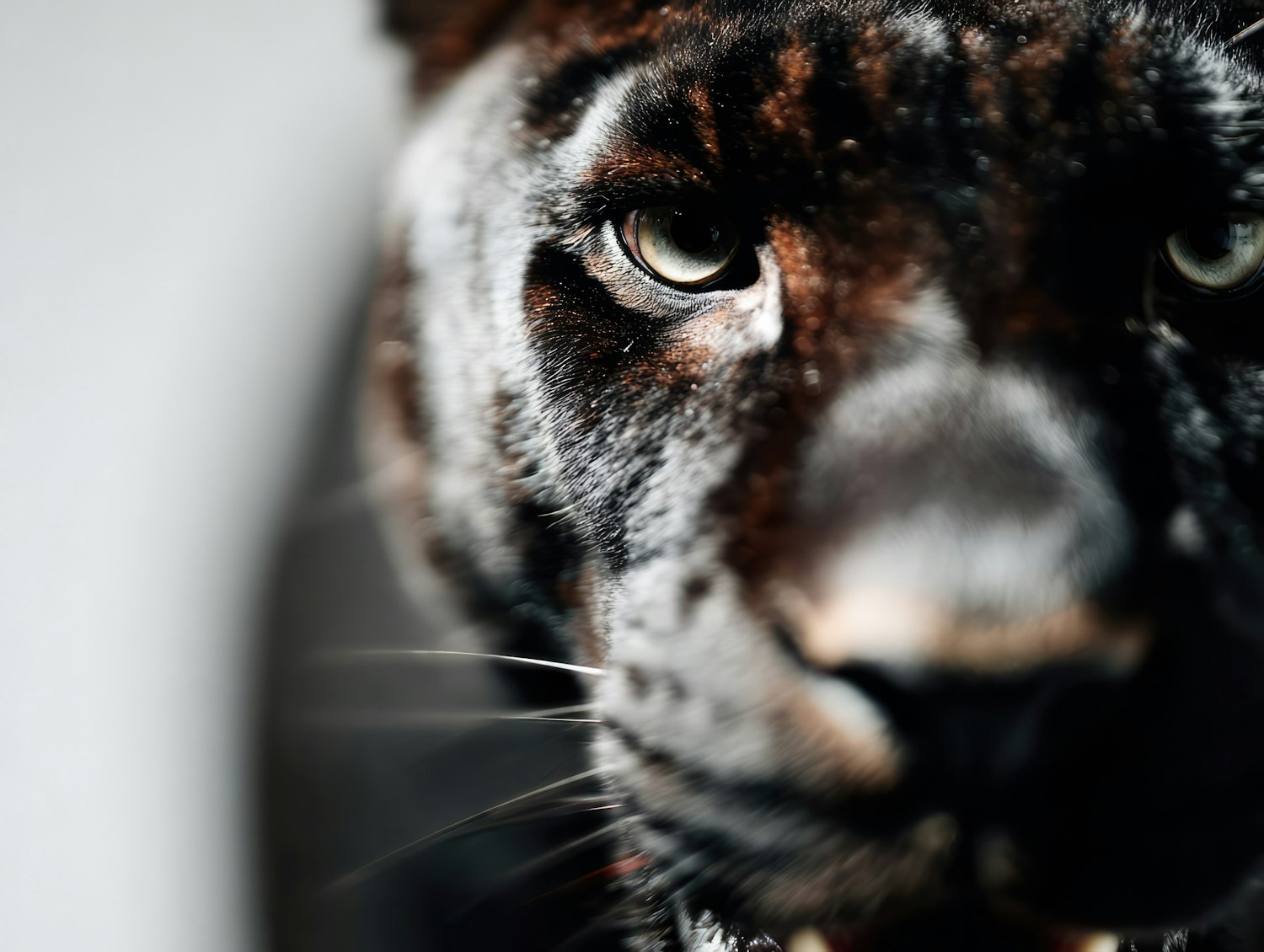 Close-up of a black panther's face, showcasing its piercing eyes and detailed fur texture with a blurred background.