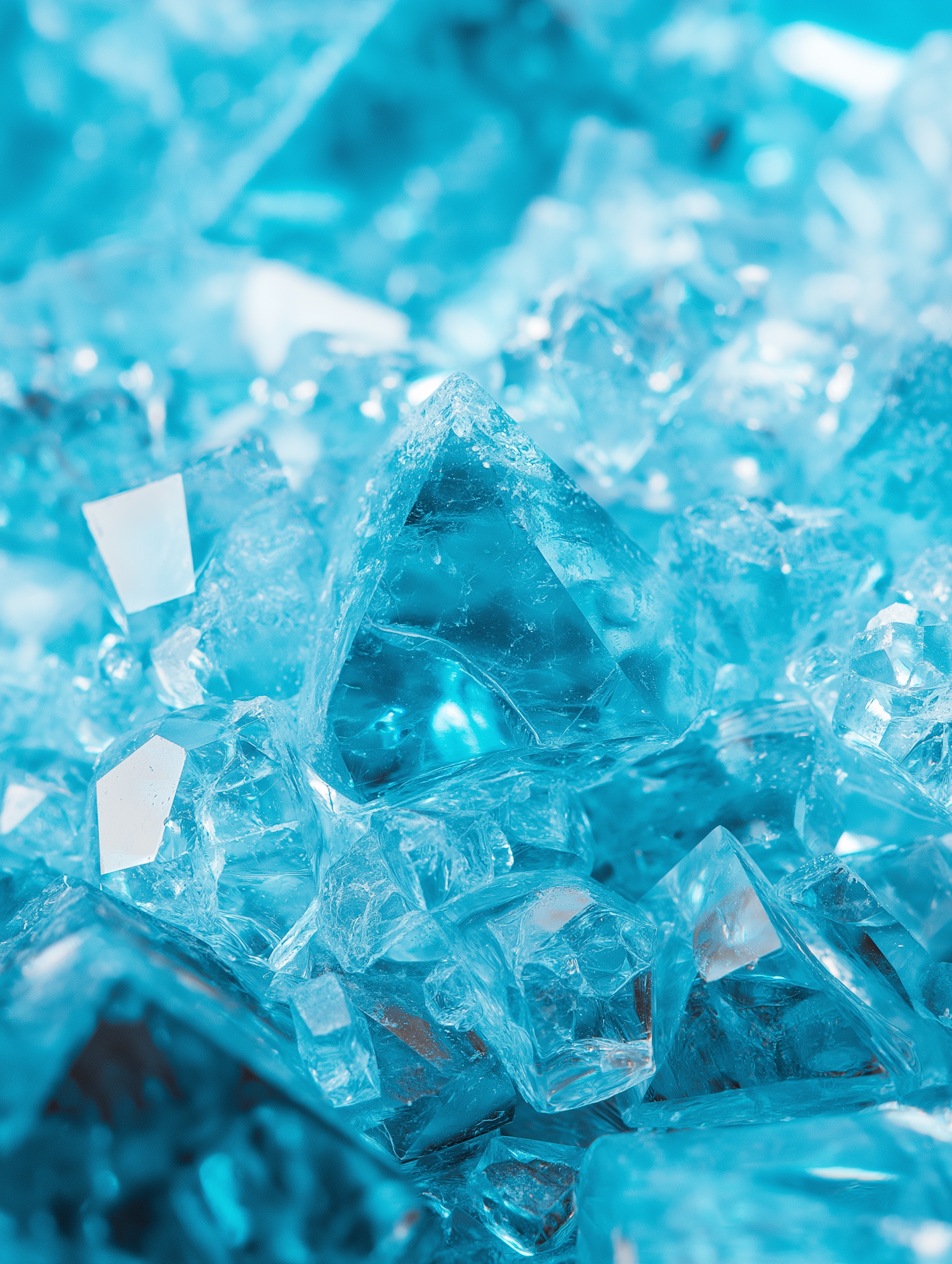 Vibrant blue crystals with sharp facets reflecting light, creating a shimmering, textured surface in a close-up view.