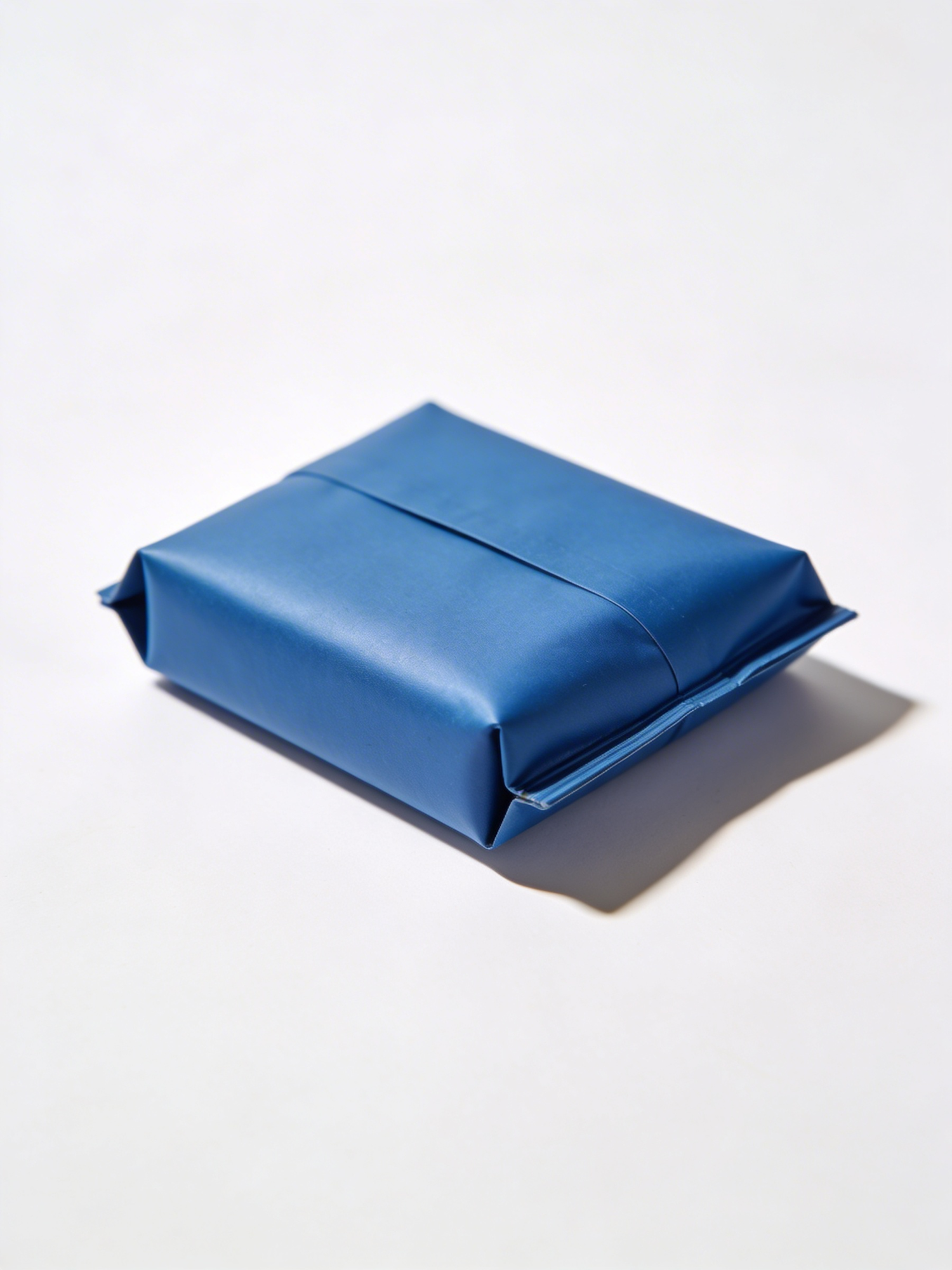 A blue packaging item with crisp folds and soft shadows, clean background, no text.