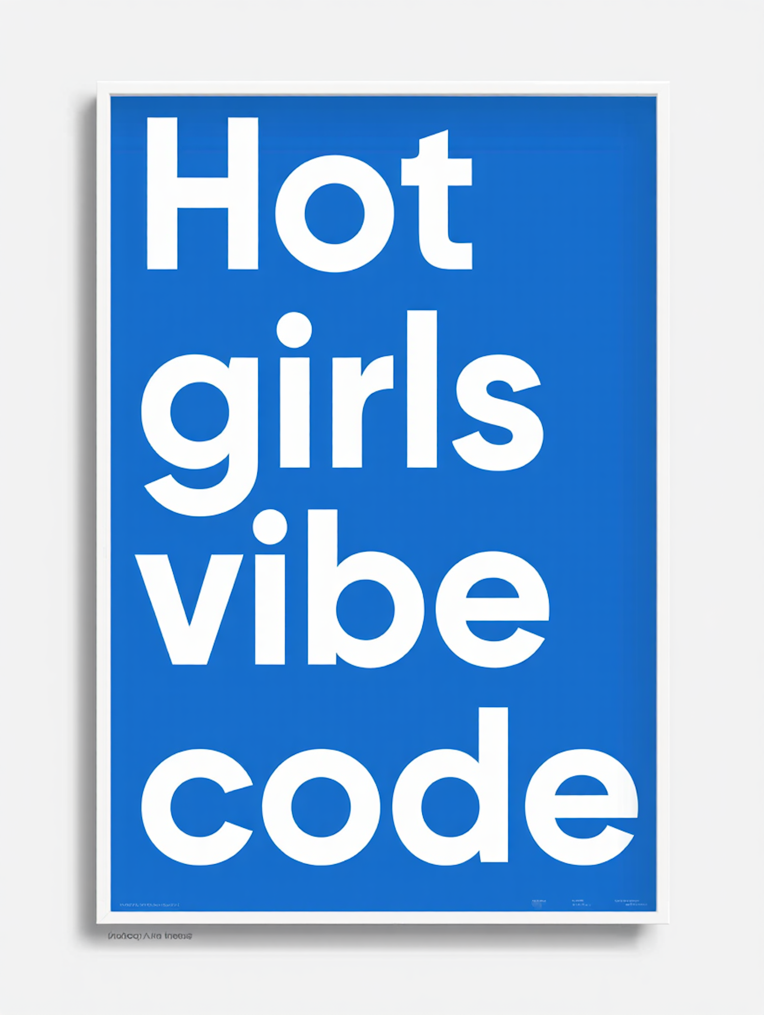 Minimalist blue poster with bold white text reading "Hot girls vibe code," perfect for tech enthusiasts and empowering decor.