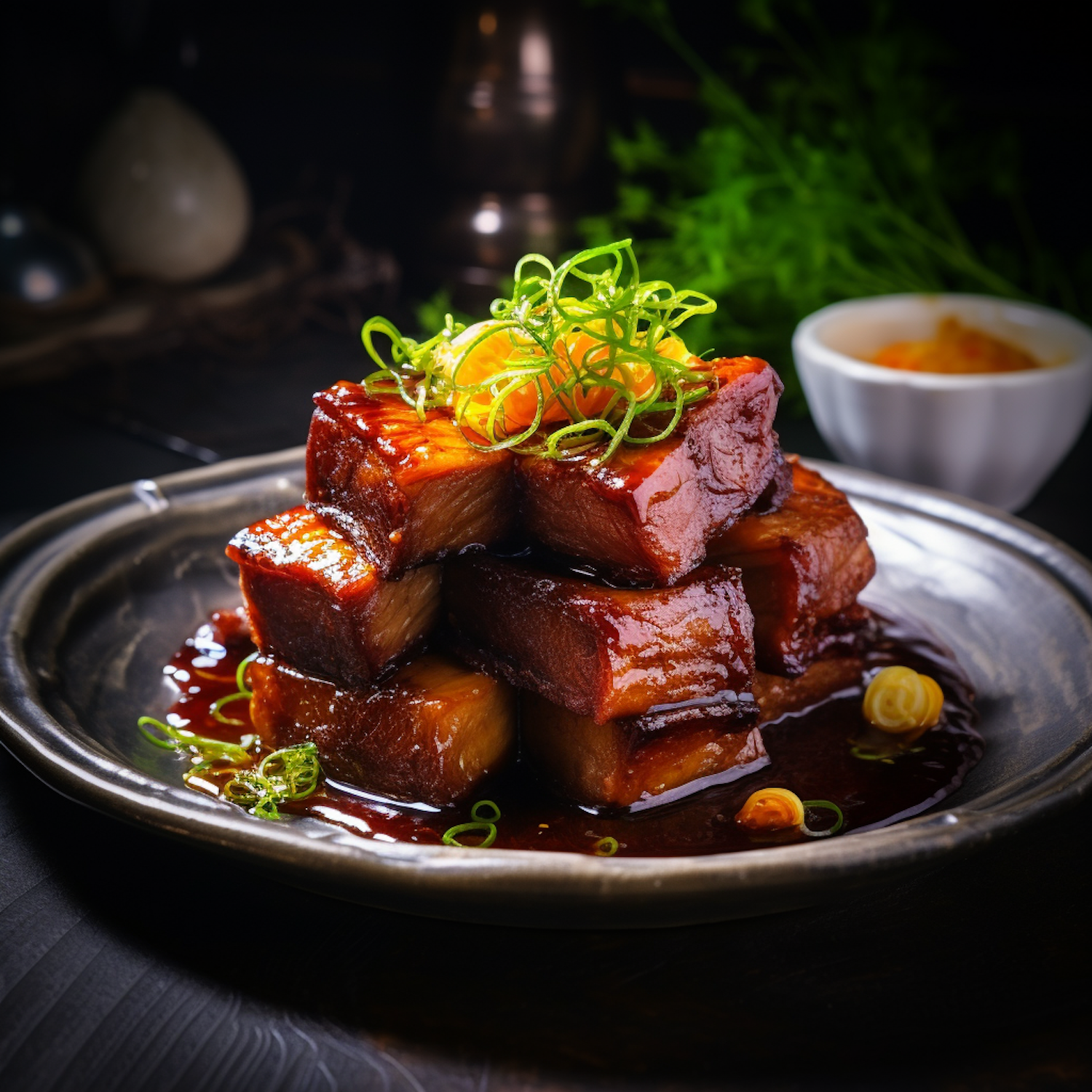Caramelized Braised Pork Belly with Garnishes