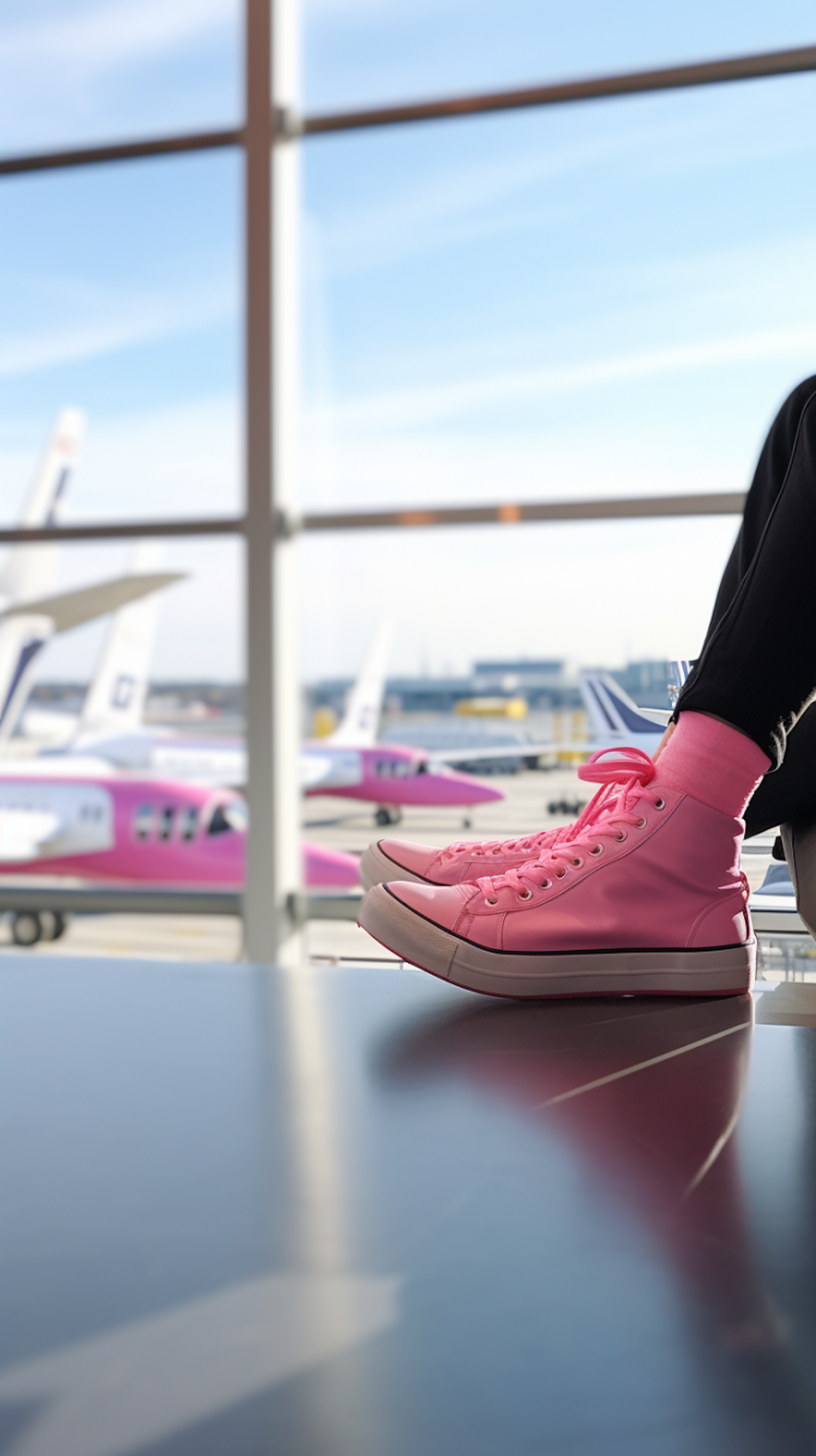 Airport Lounge: Pink Sneakers in Transit