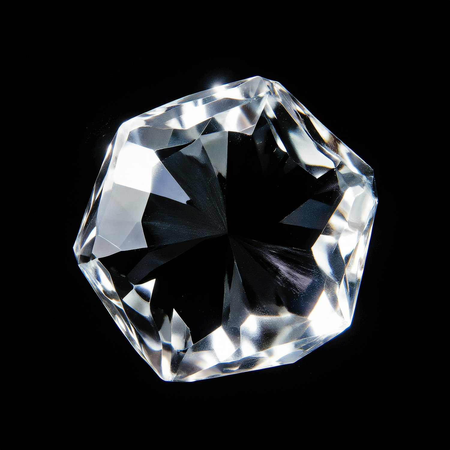 A stunningly cut diamond sparkles brilliantly against a black background, showcasing its clarity and precision.