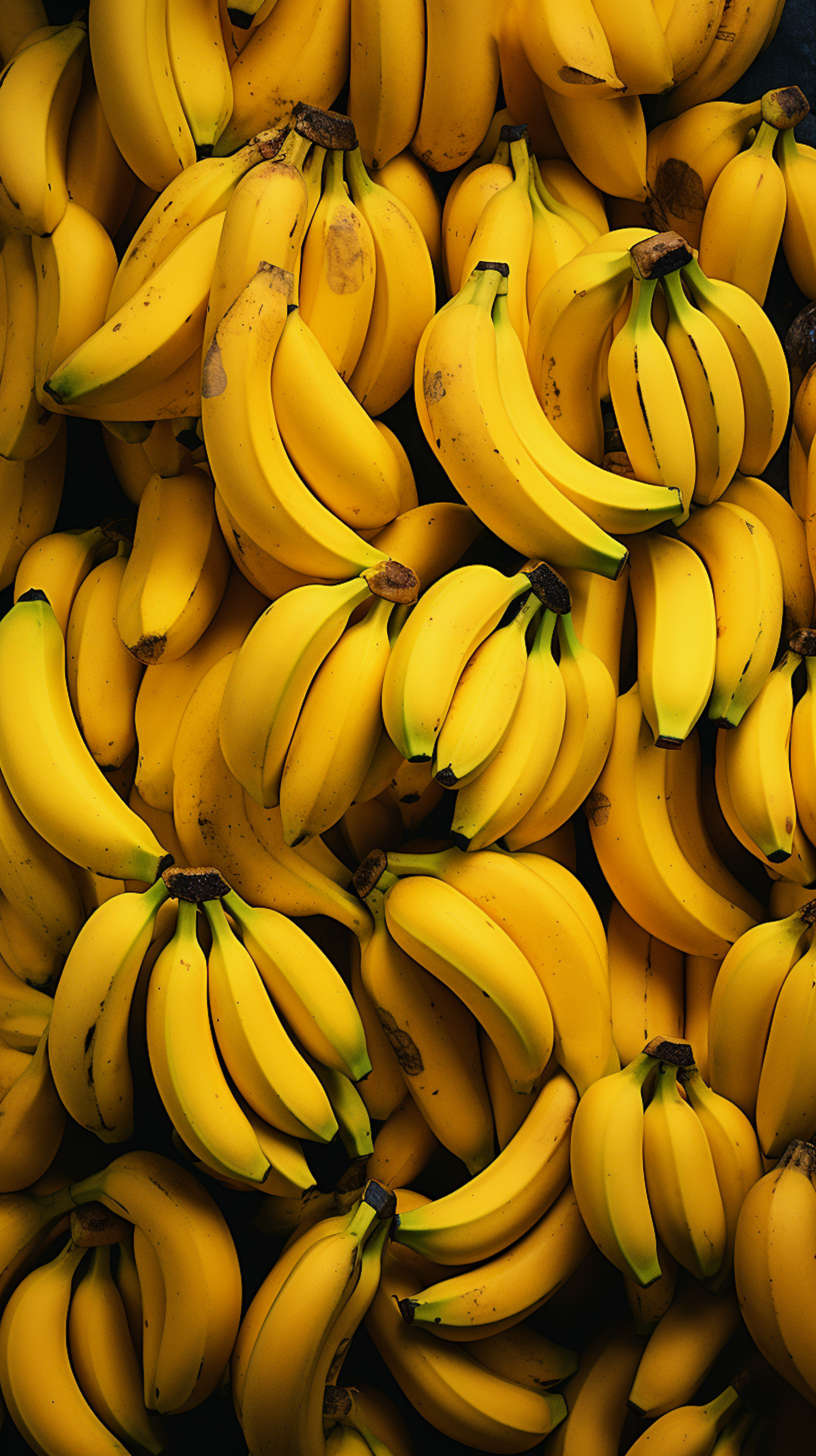 A vibrant display of ripe yellow bananas with smooth skins and natural curves, creating a fresh and tropical feel.