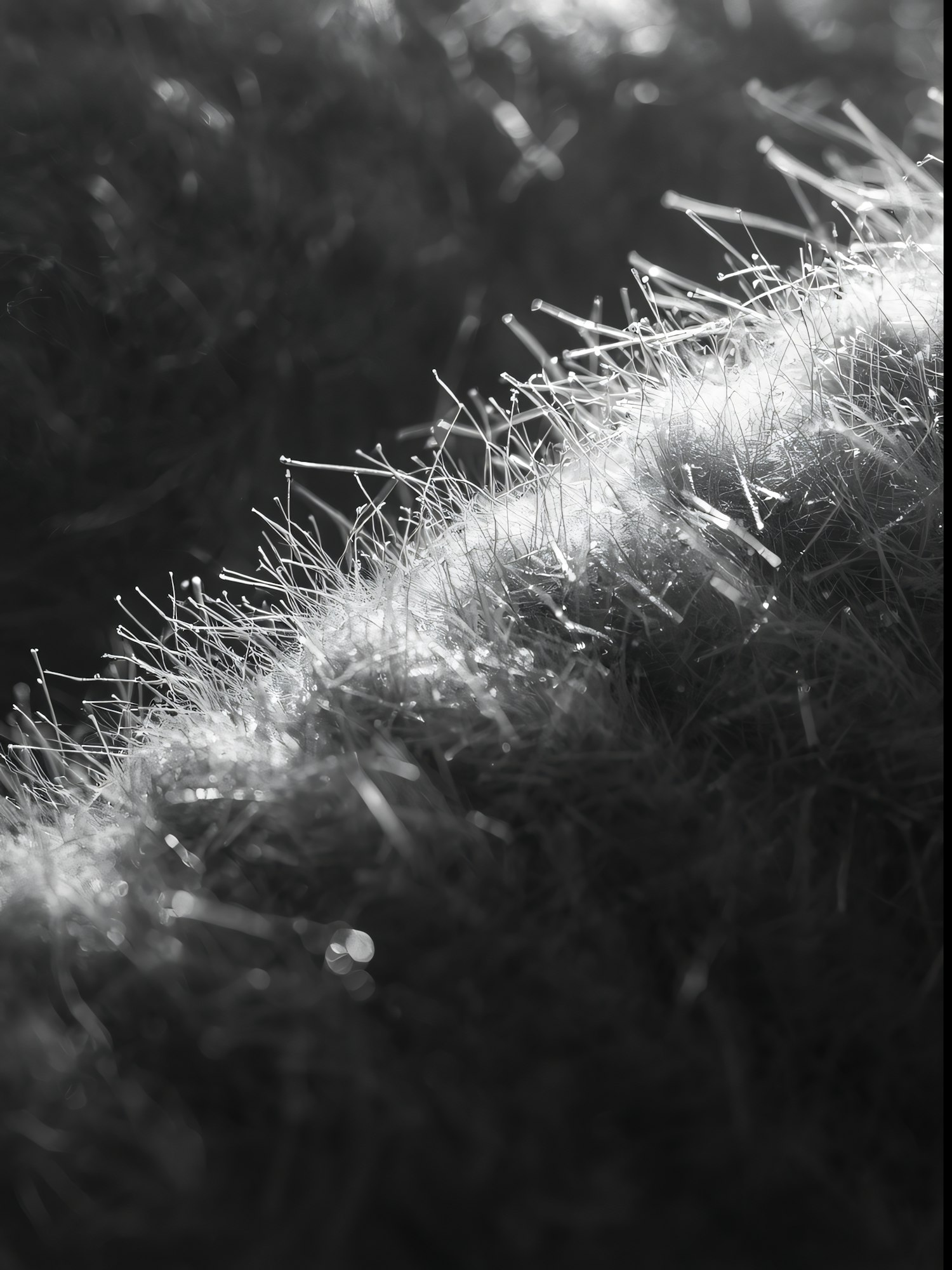 Close-up of cactus spines in monochrome, showcasing intricate textures and dramatic lighting against a blurred background.