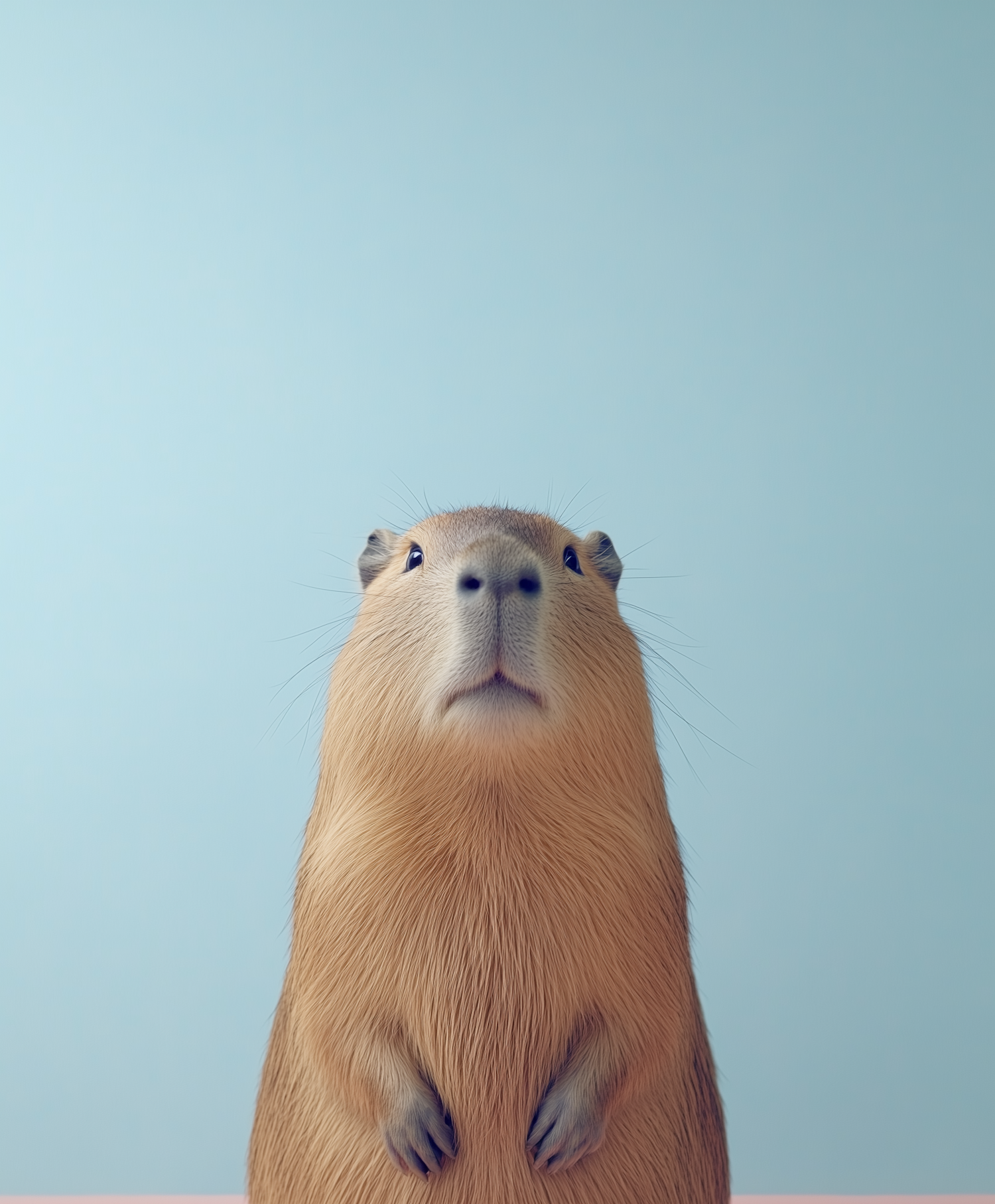 Adorable digital illustration of a curious capybara standing upright against a pastel blue background. Perfect for animal lovers!