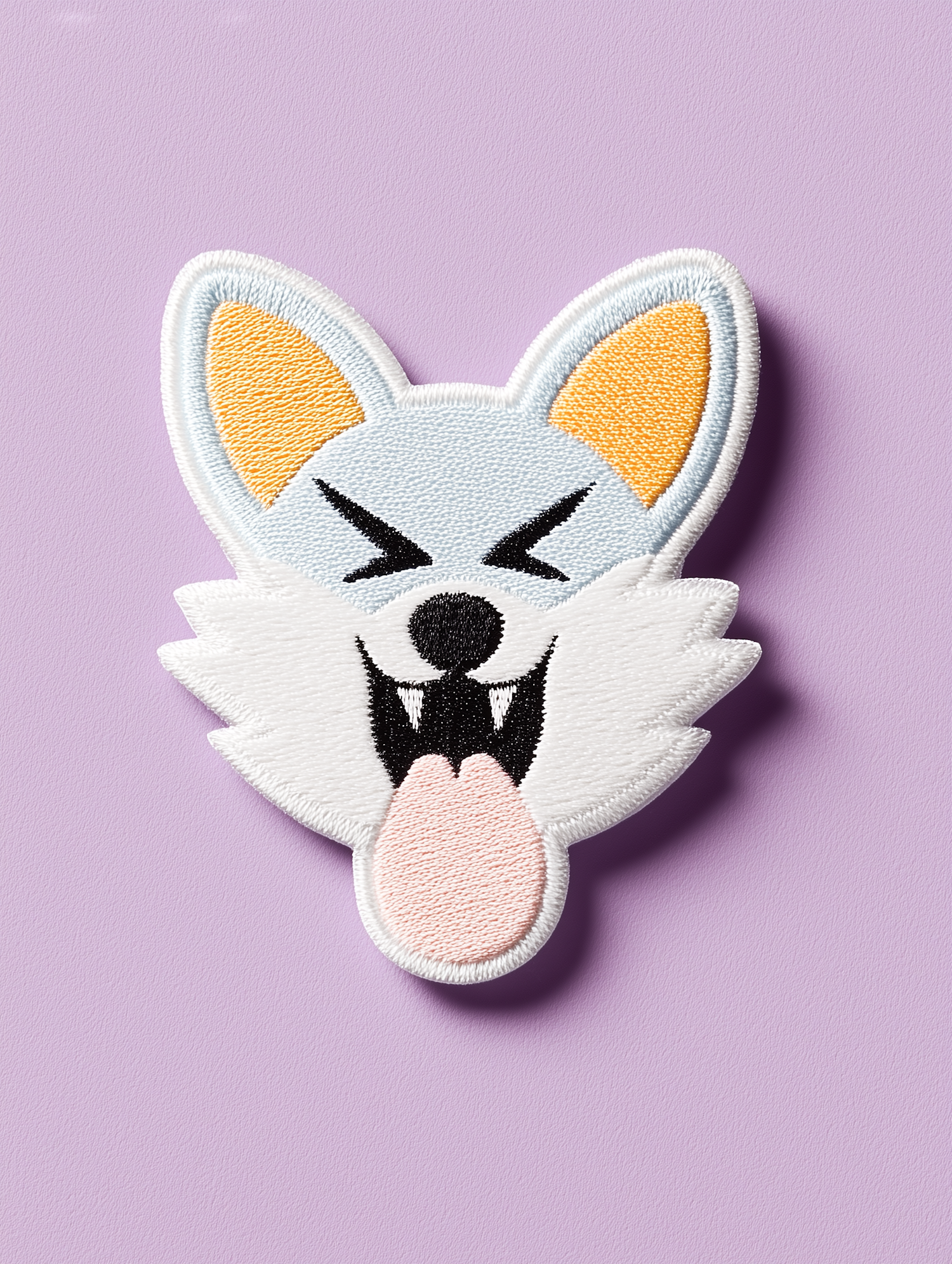 A playful embroidered fox patch with vibrant colors on a lavender background, perfect for adding charm to clothing or accessories.