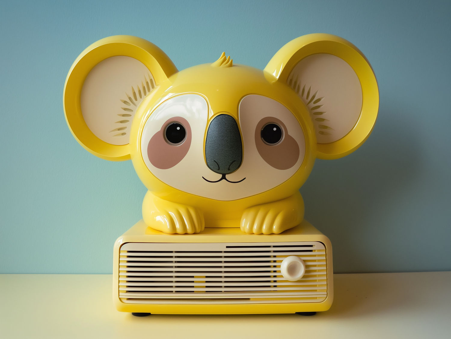 Adorable yellow koala-shaped appliance with a cute face, perfect for kids' rooms or as a decorative piece. Features a playful design.