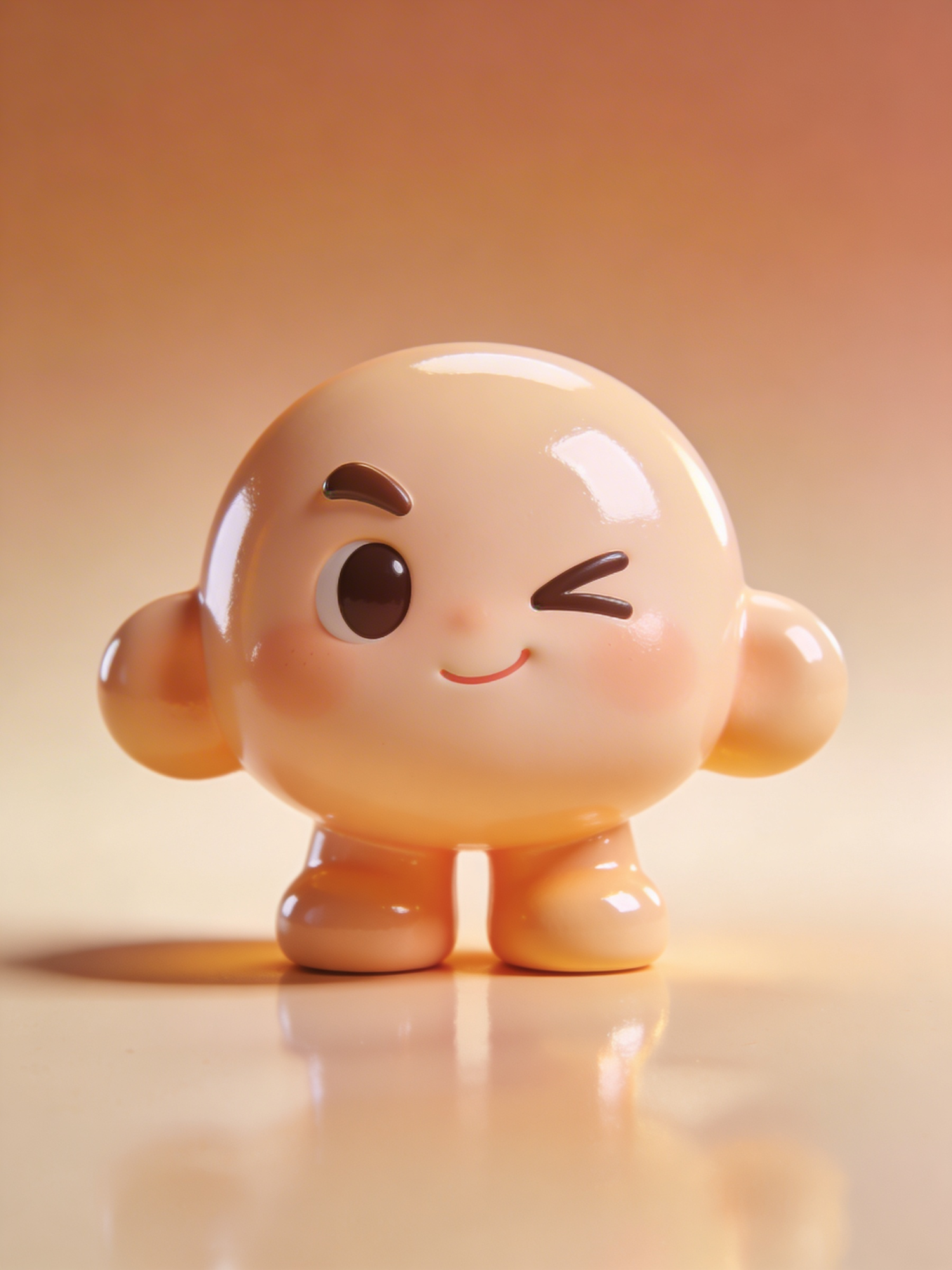 A cute, glossy figurine with a winking expression and warm tones, perfect for adding charm to any collection or display.