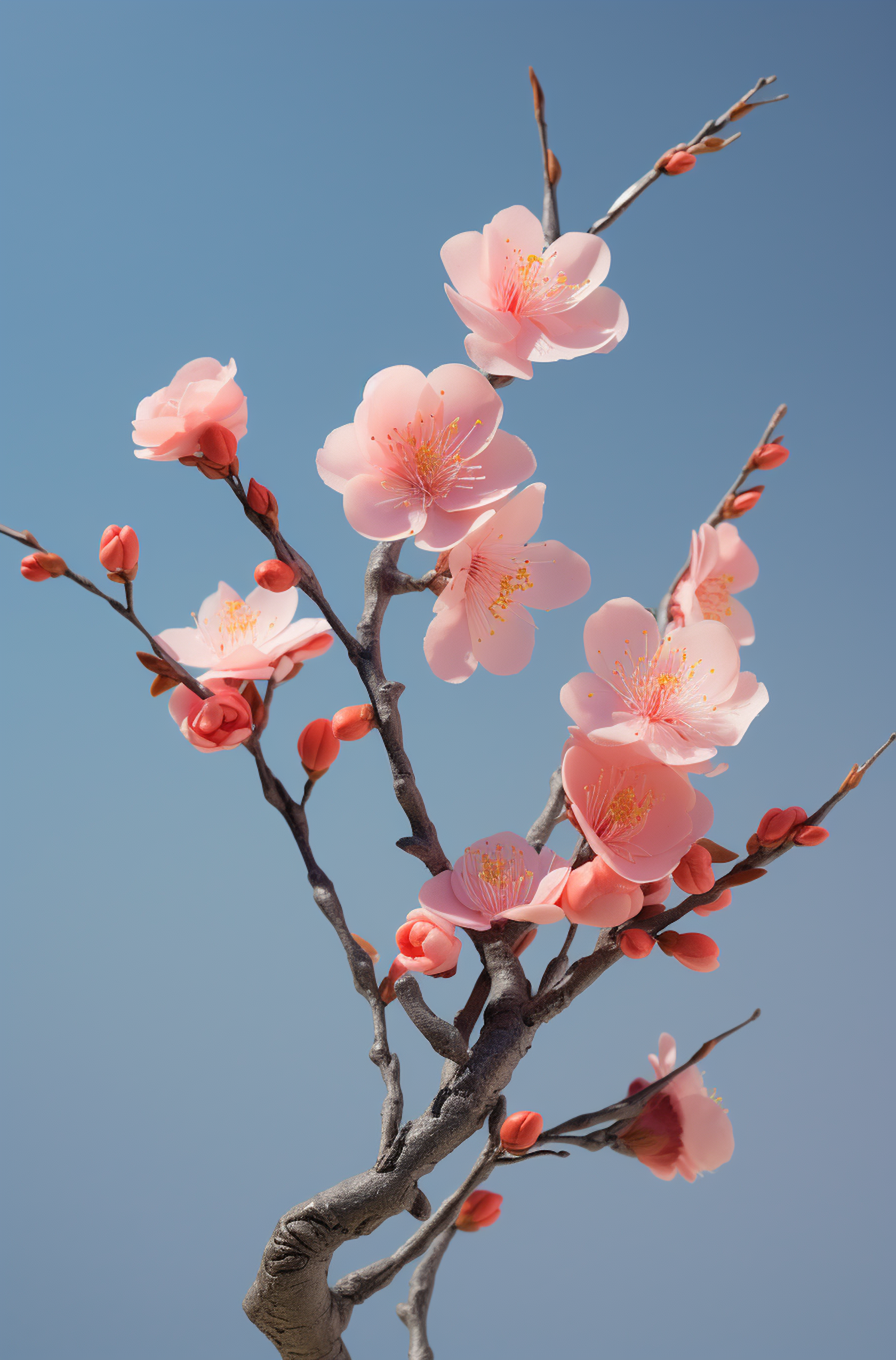 Delicate pink cherry blossoms in full bloom against a clear blue sky, showcasing nature's elegance and beauty.