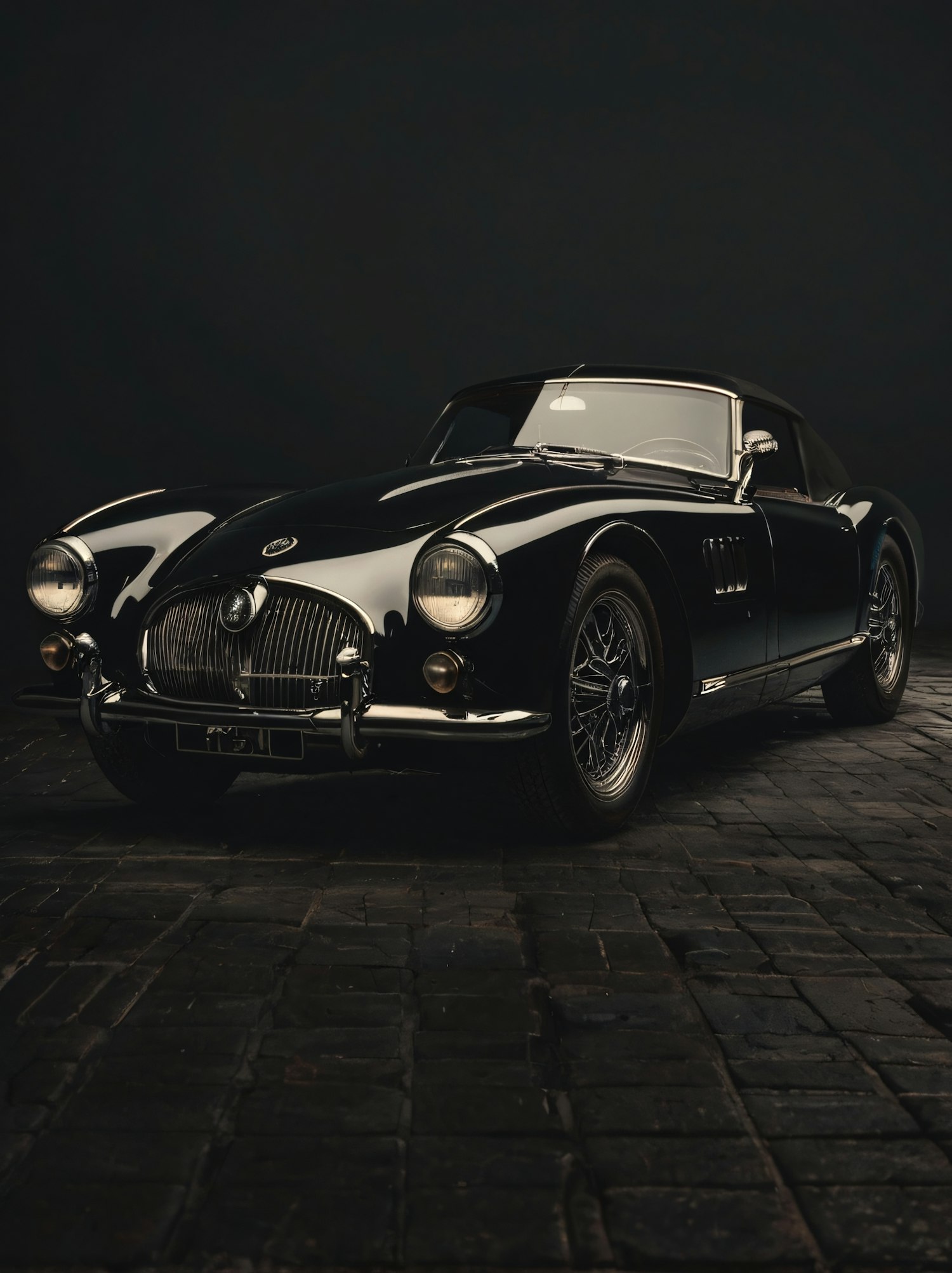 Classic Black Car on Cobblestone