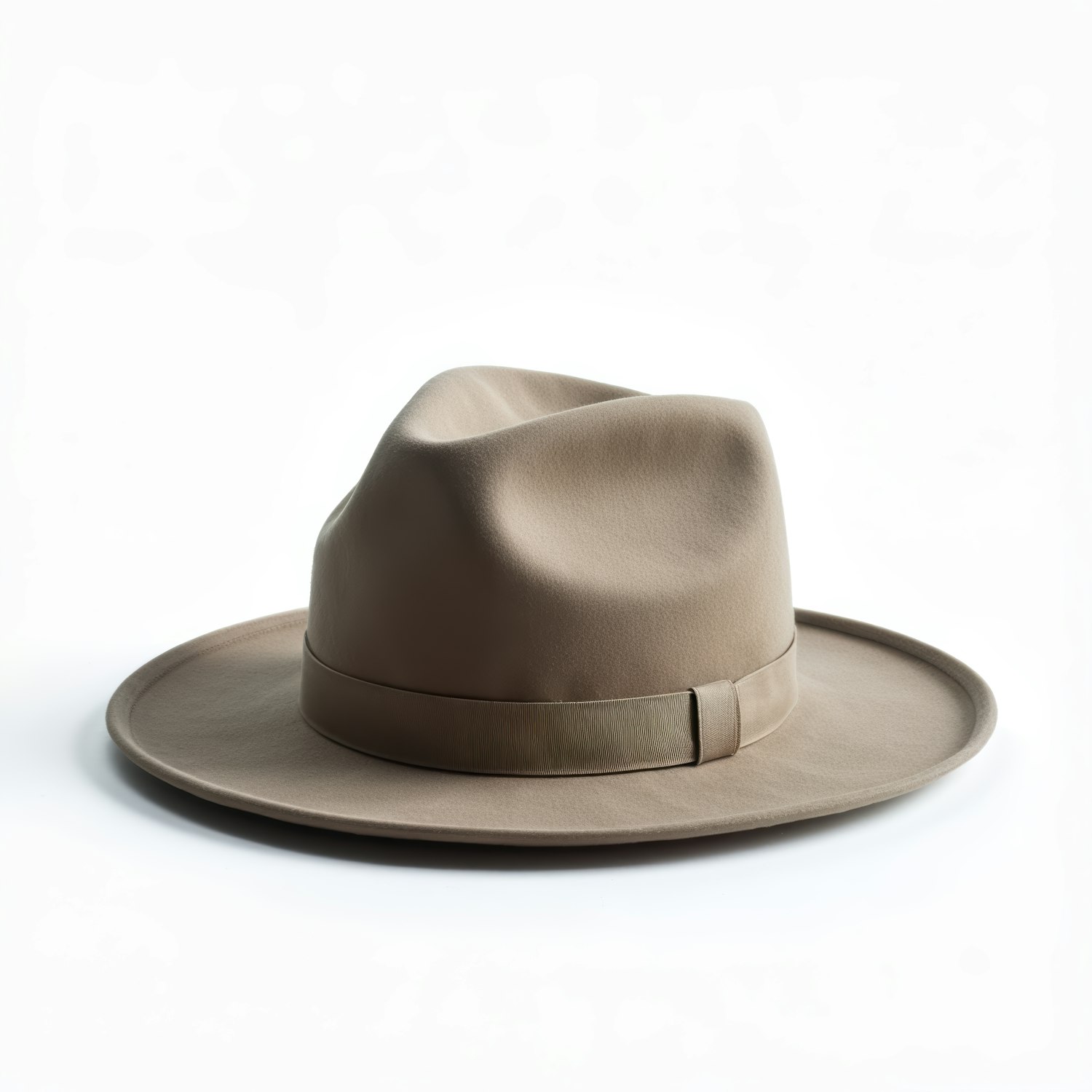 Elegant light brown fedora hat with wide brim and classic pinch, set against a plain white background.