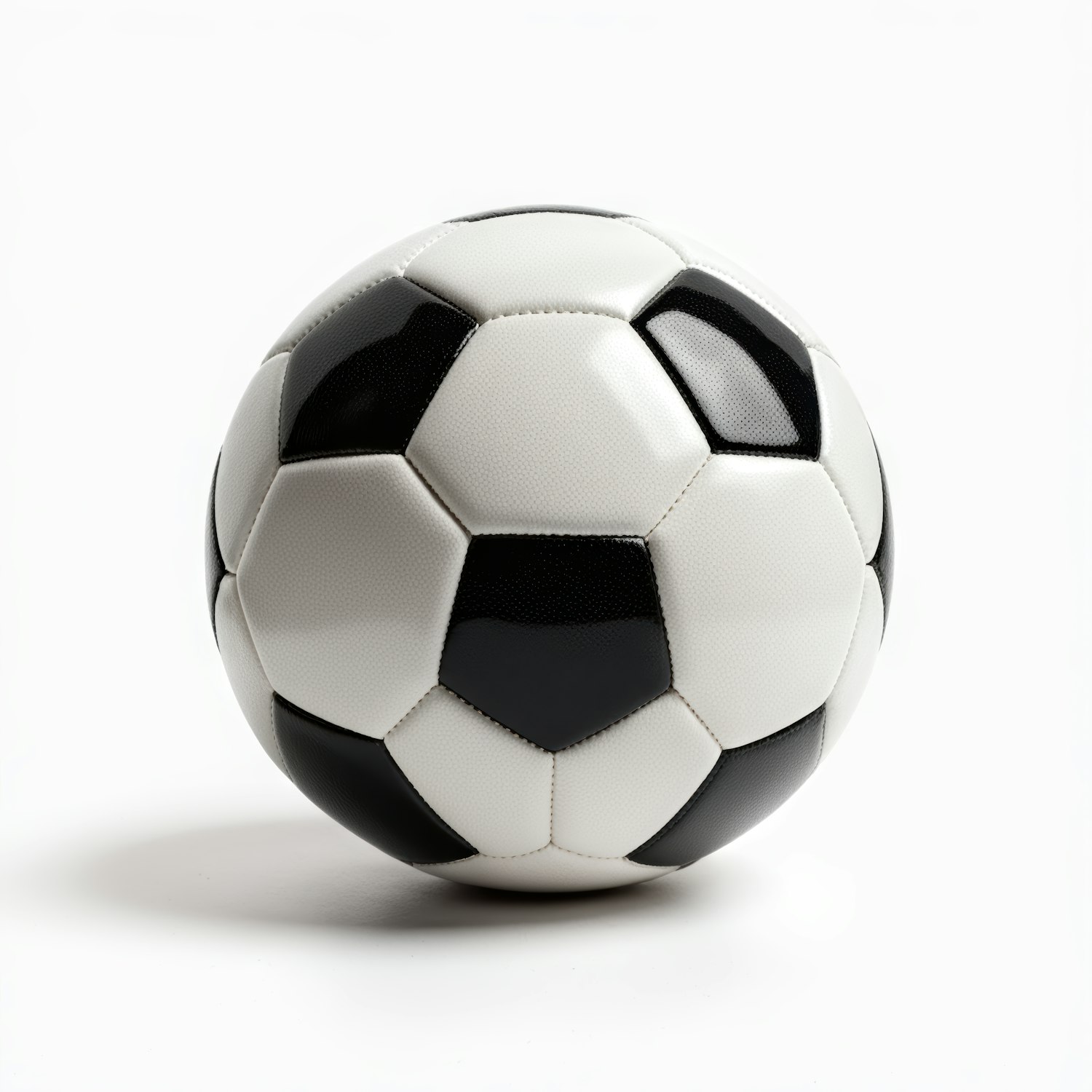 Classic black and white soccer ball with pentagon and hexagon pattern on a plain white background.