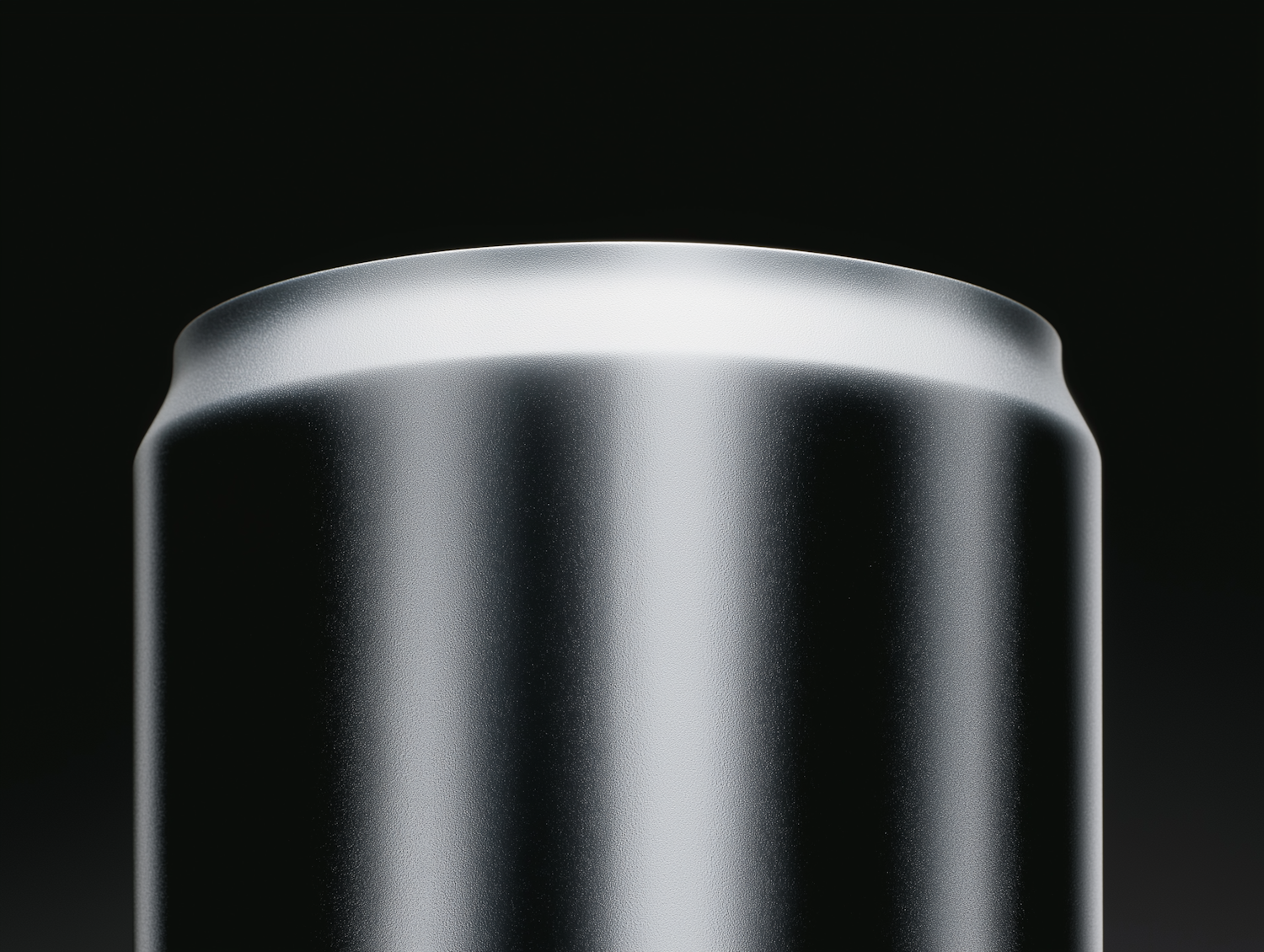 Minimalist close-up of a sleek aluminum beverage can with a glossy surface, showcasing light reflections under a dark backdrop.