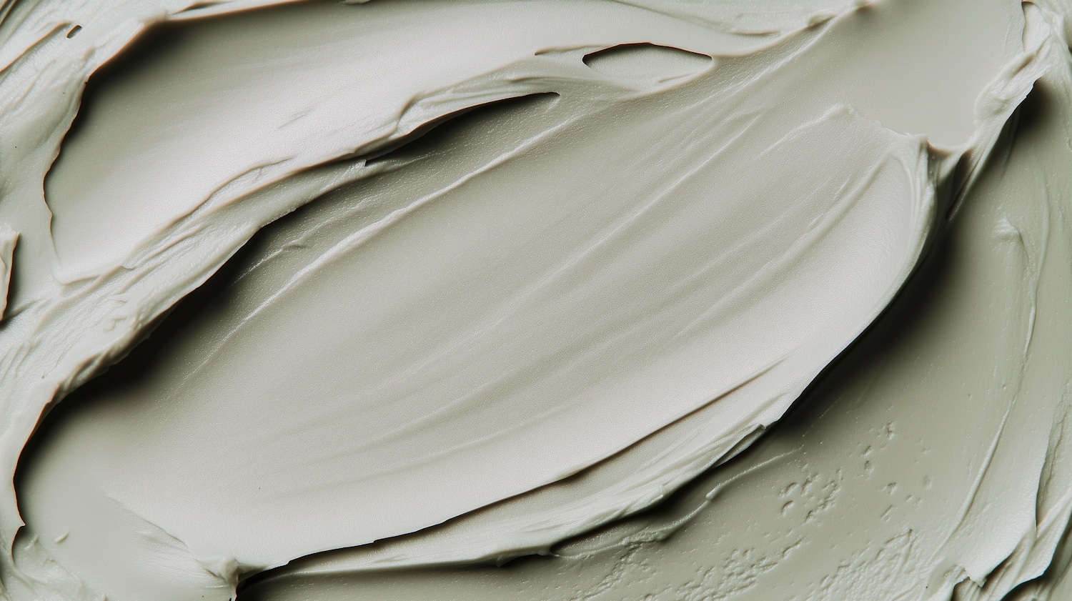 Close-up of a smooth, creamy light greenish-gray substance with rich texture and glossy finish, highlighting its tactile quality.