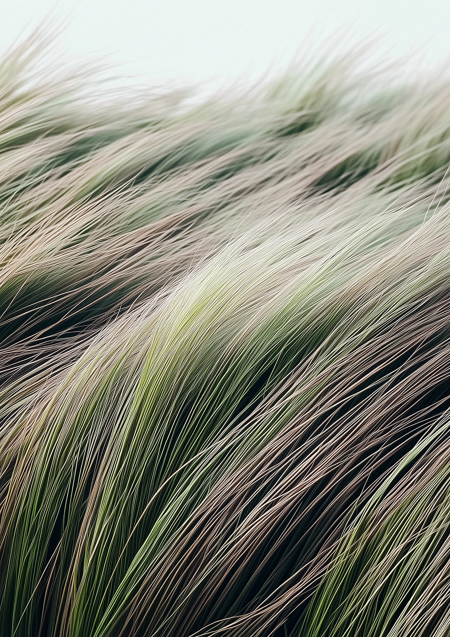 Close-up of flowing grass blades in soft greens and browns, creating a serene wave-like pattern.