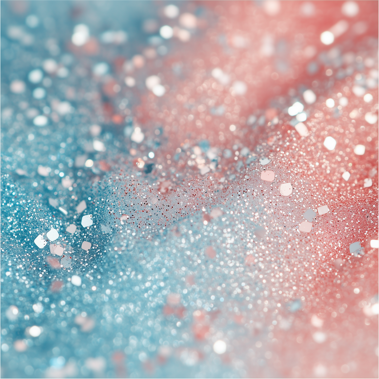 Abstract glitter background with blue and pink hues, featuring shimmering particles and a smooth color gradient.