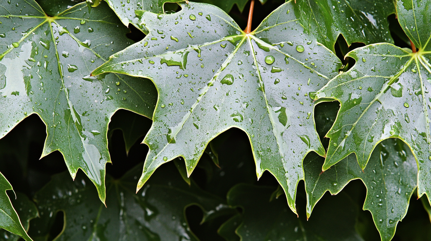 Close-up of Green Maple Leaves with Water Droplets
