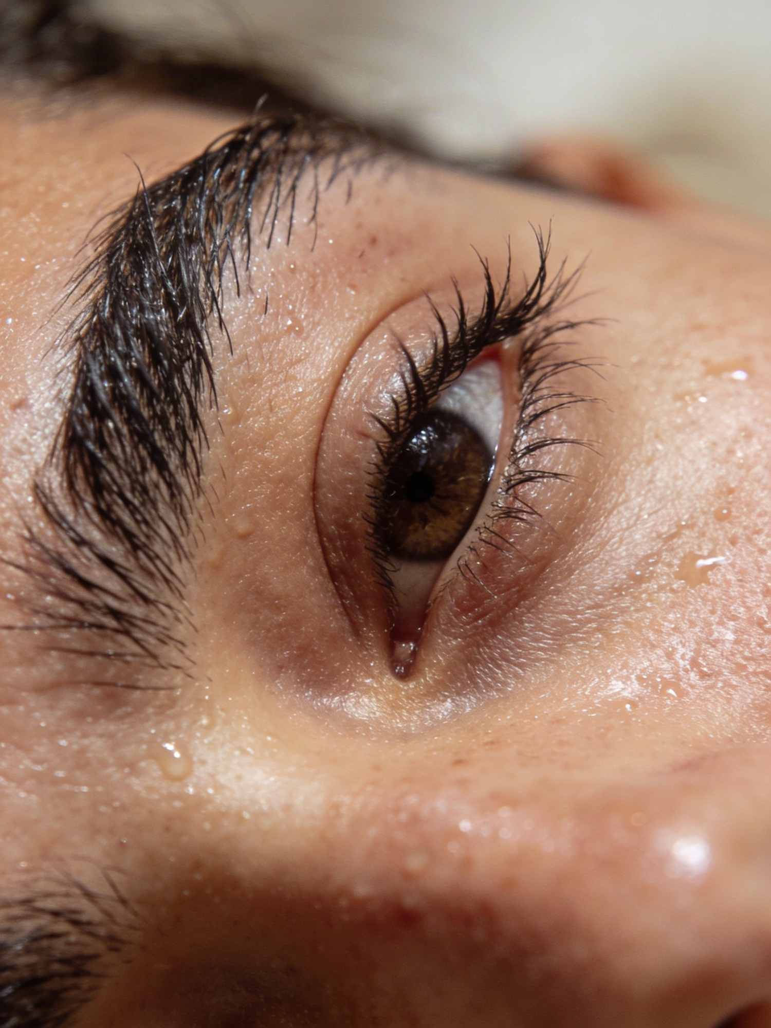 Close-up of a human eye with detailed focus on the eyelashes, eyebrow, and skin texture, showcasing natural beauty and intricate details.