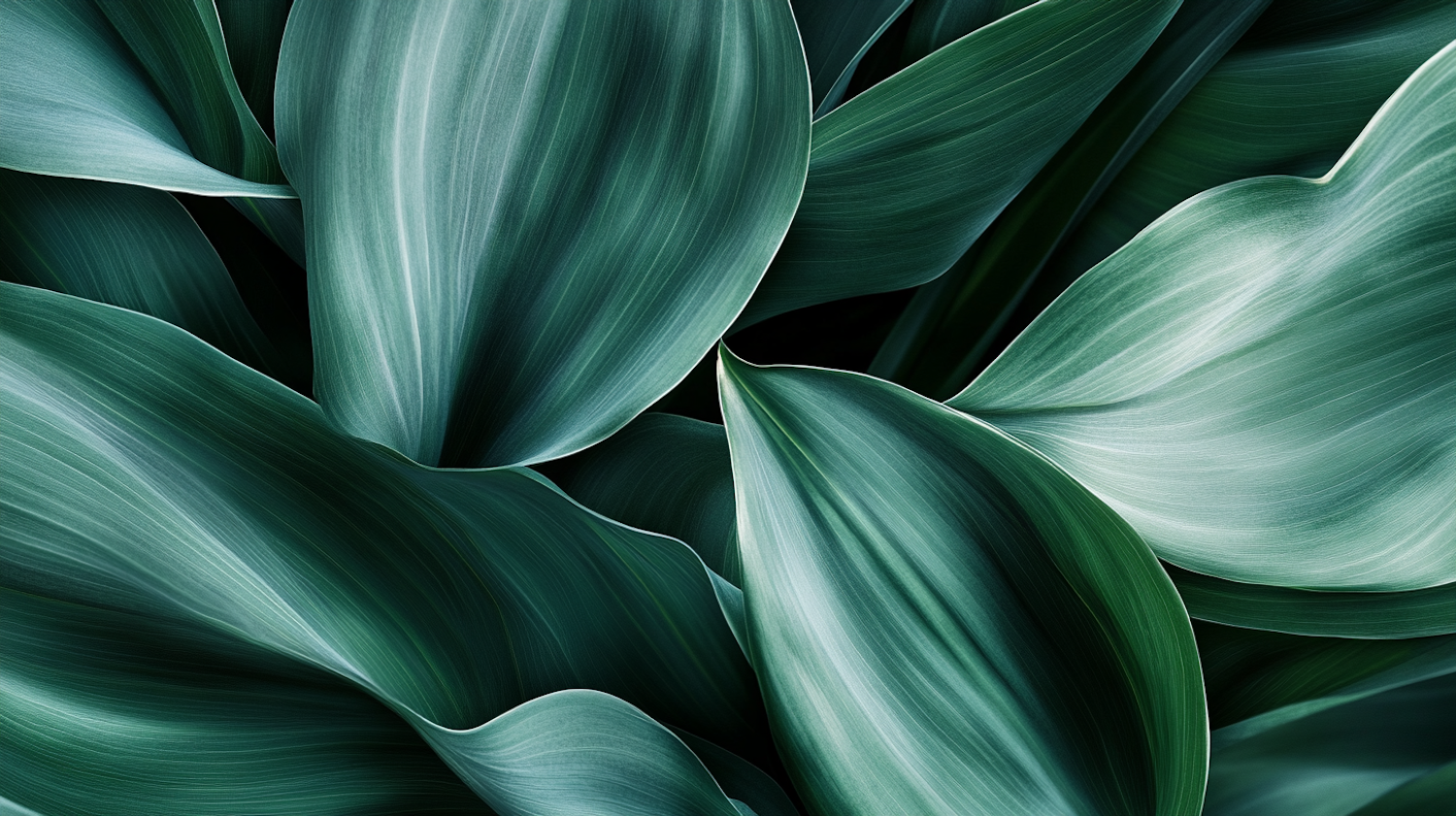 Close-up of lush green leaves with rich gradients and subtle veins, creating a vibrant and natural pattern.
