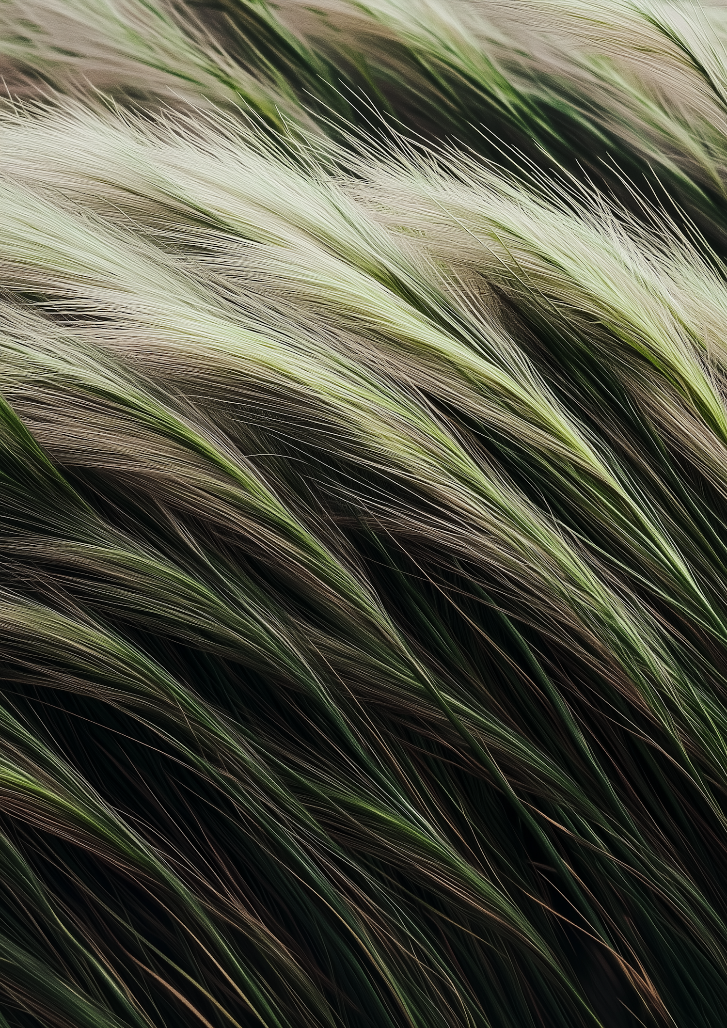 Close-up of wispy grass swaying in the wind, showcasing delicate green and beige hues in a tranquil, natural setting.