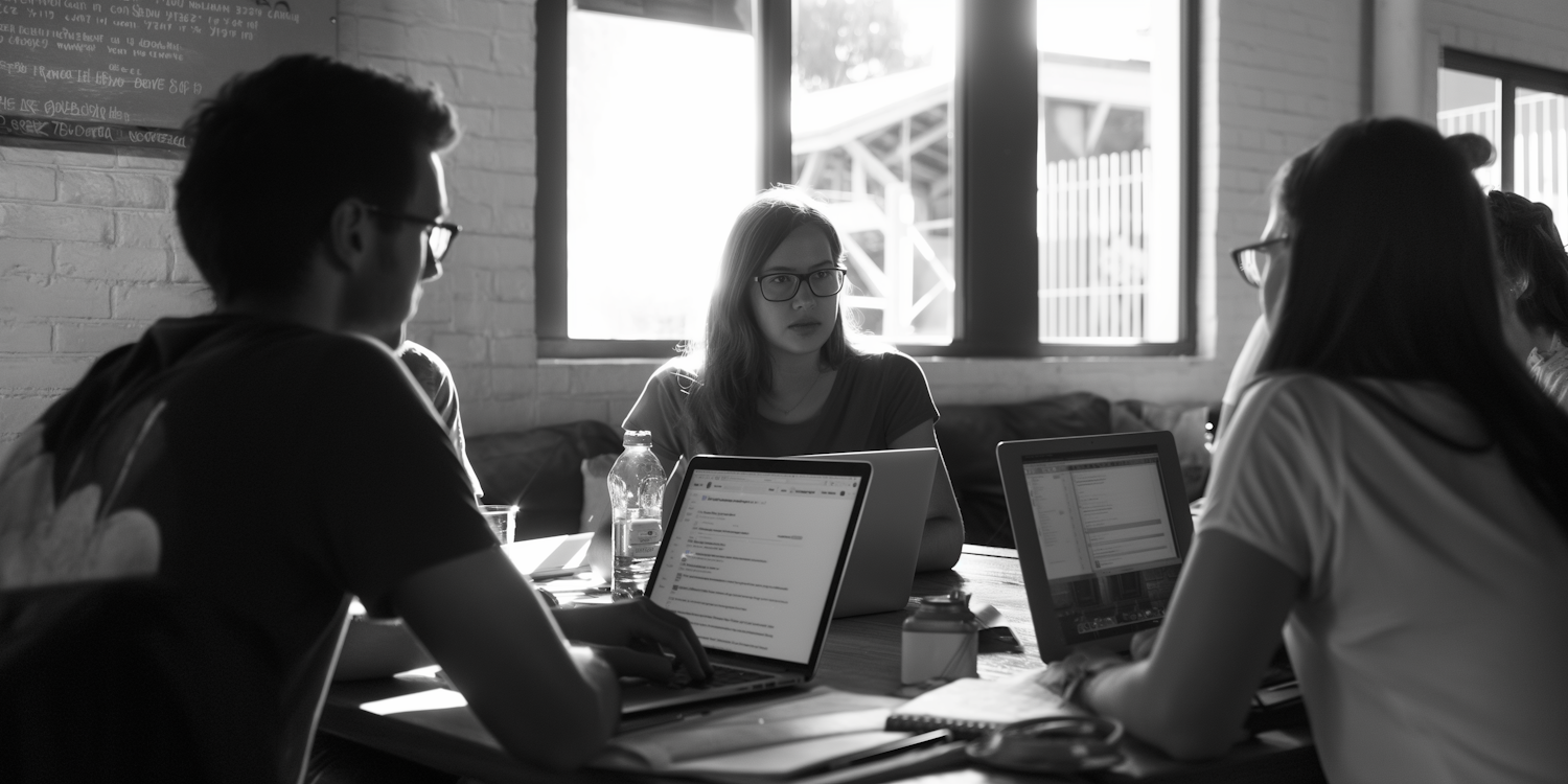 Collaborative Work Session in Black and White