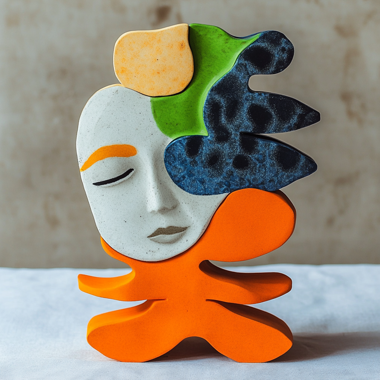 Colorful Abstract Sculpture with Serene Face