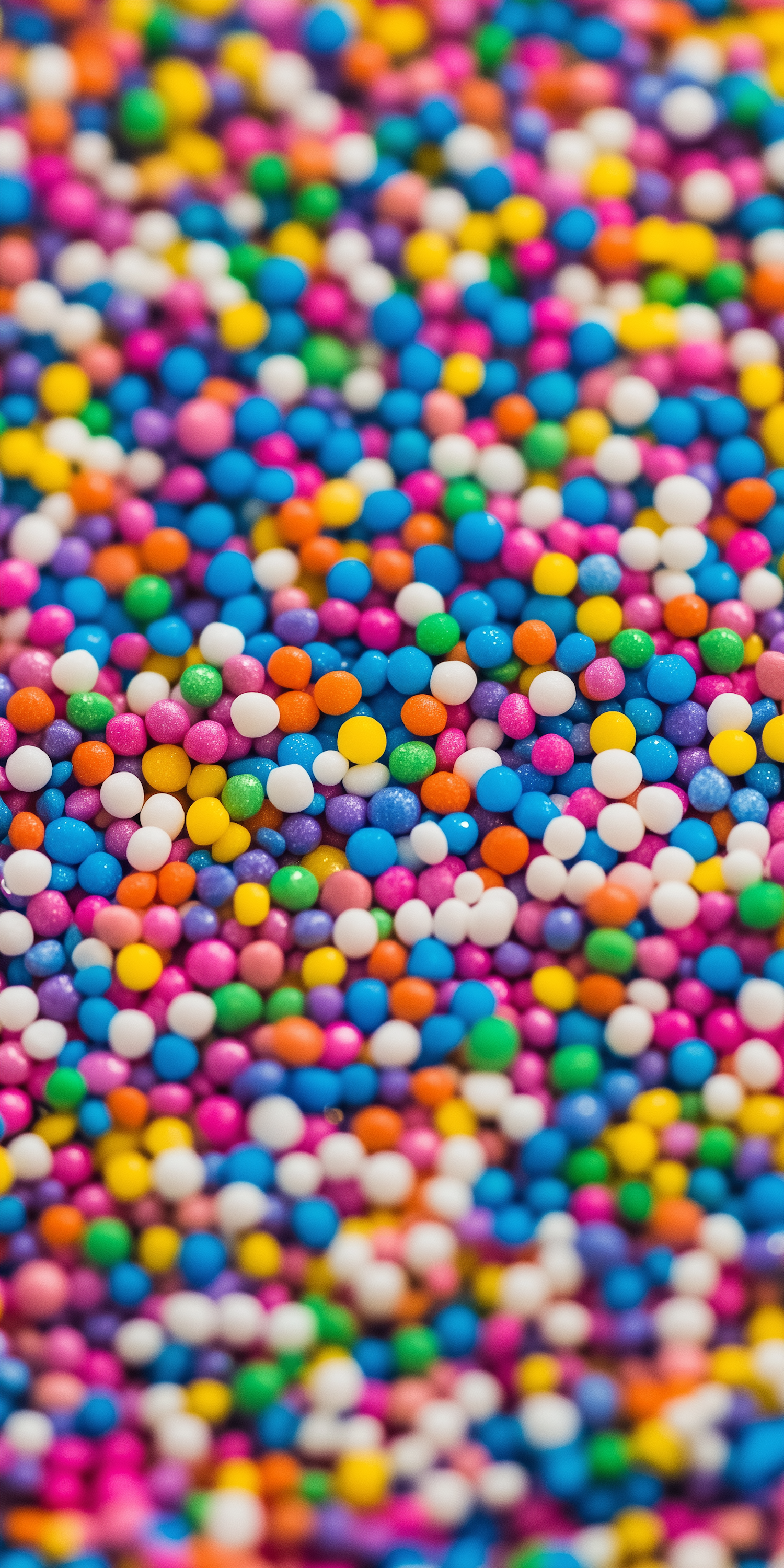 Bright and colorful close-up of candy sprinkles in various vibrant hues, creating a cheerful and dynamic pattern.