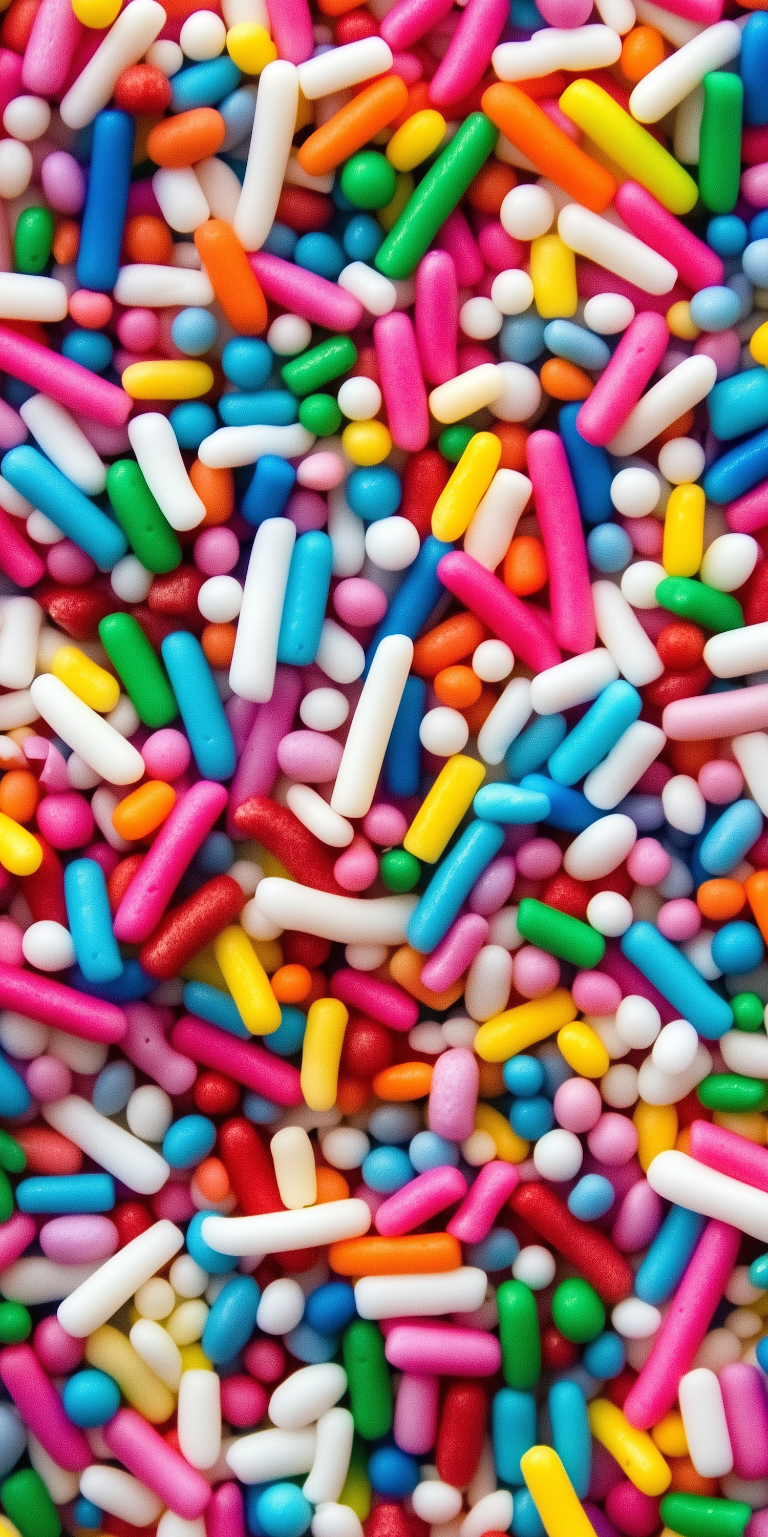 Bright and colorful candy sprinkles in various shapes and sizes, perfect for adding a festive touch to desserts and sweet treats.