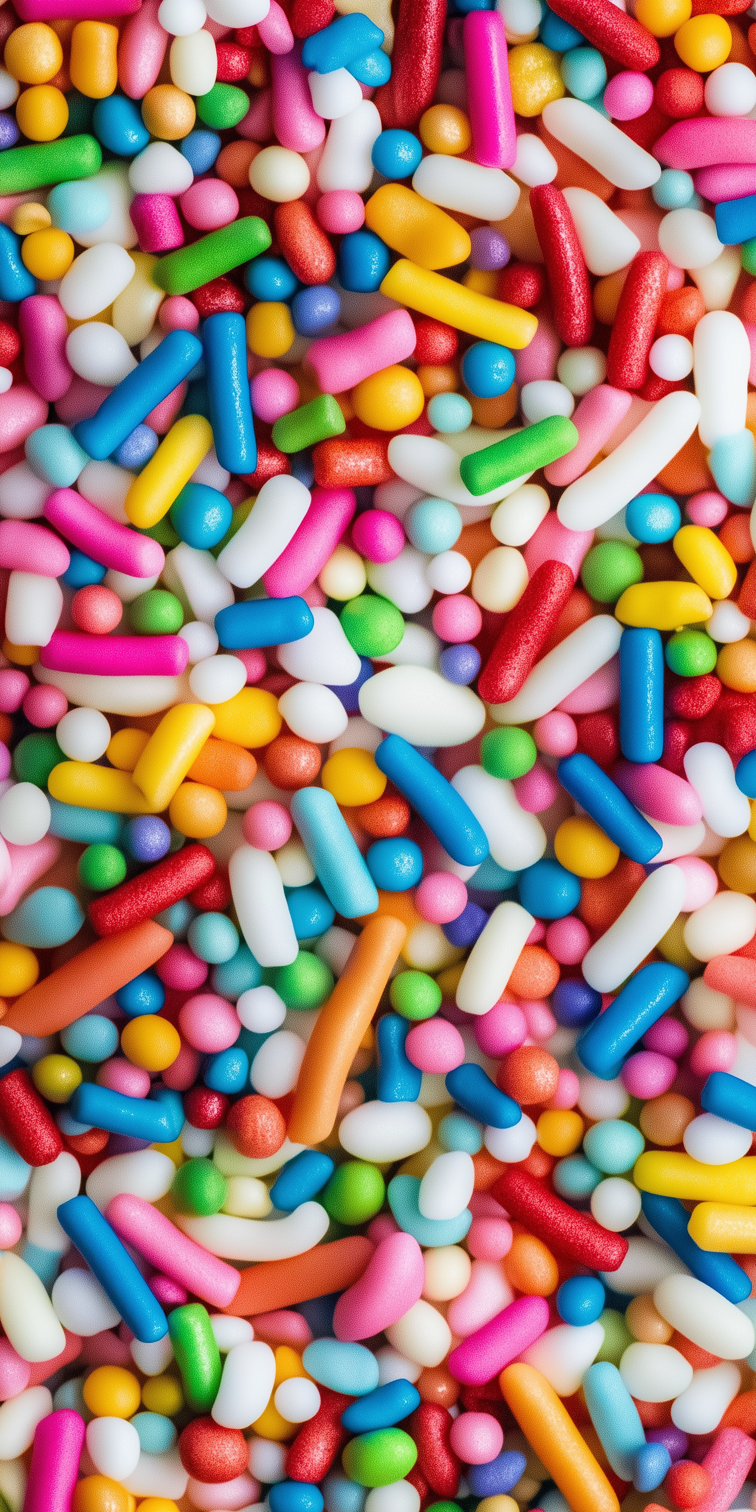 Bright and colorful candy sprinkles in various shapes and sizes, perfect for decorating desserts or adding a playful touch to treats.