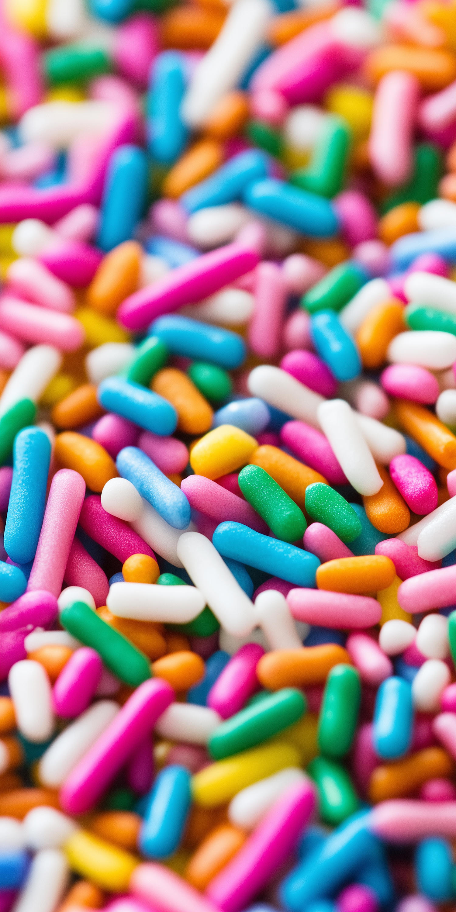 Bright and colorful close-up of candy sprinkles in pink, blue, green, yellow, and white, perfect for decorating desserts or adding fun to treats.