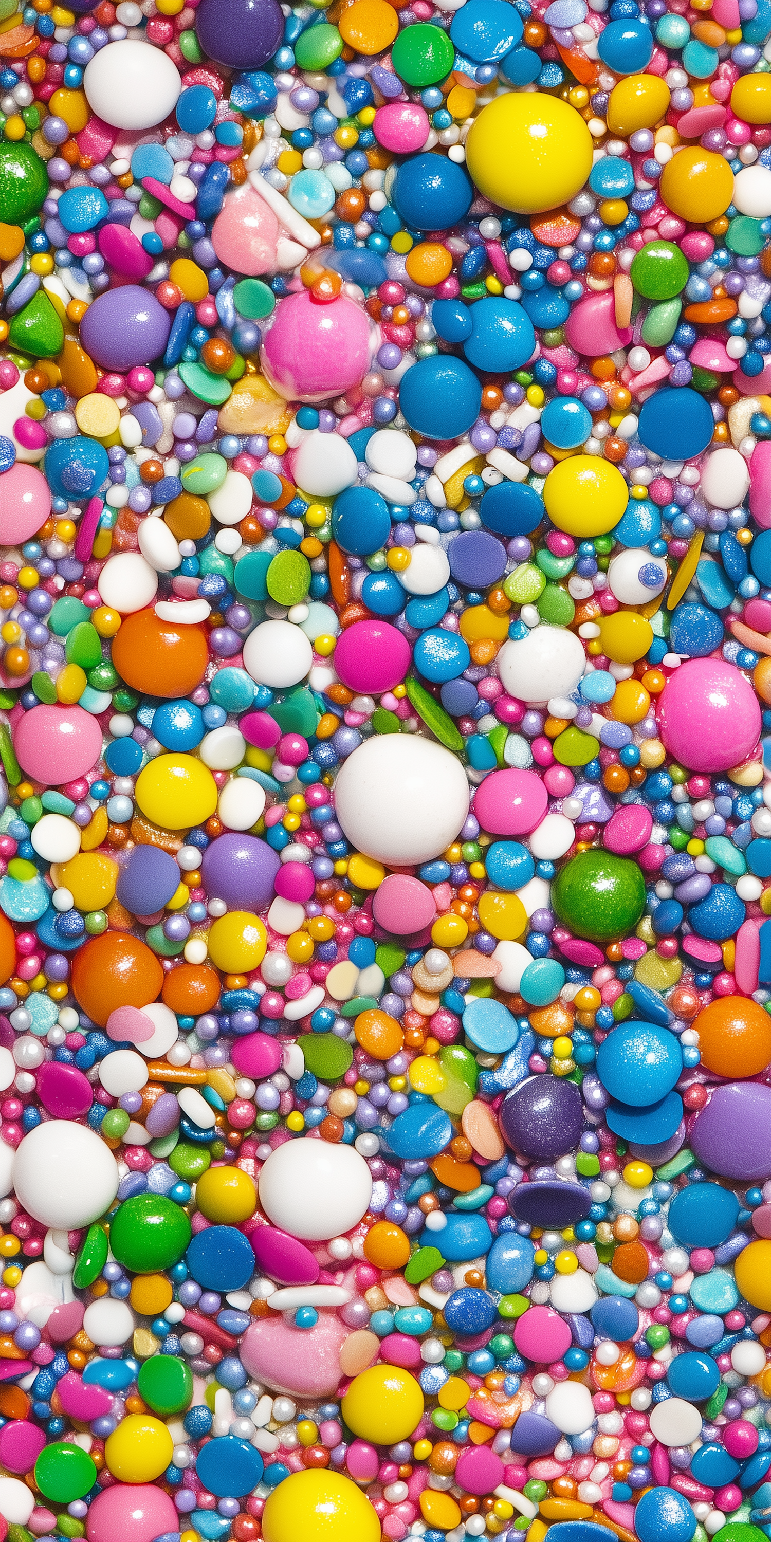Bright and colorful close-up of assorted candy sprinkles in various shapes and sizes, perfect for adding fun to desserts or festive occasions.