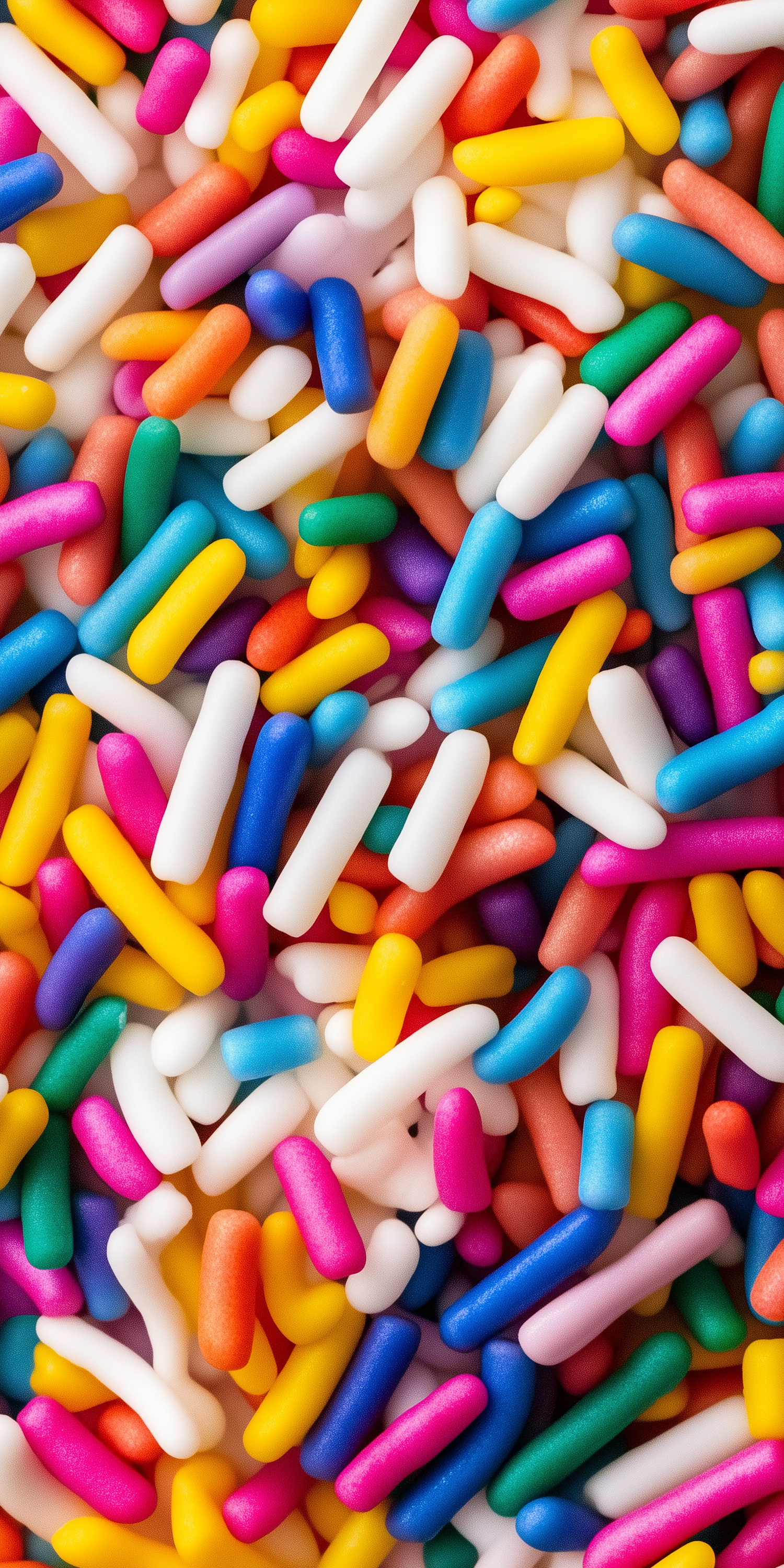 Bright and colorful candy sprinkles in a close-up view, showcasing a mix of vibrant hues and glossy textures. Perfect for dessert lovers!