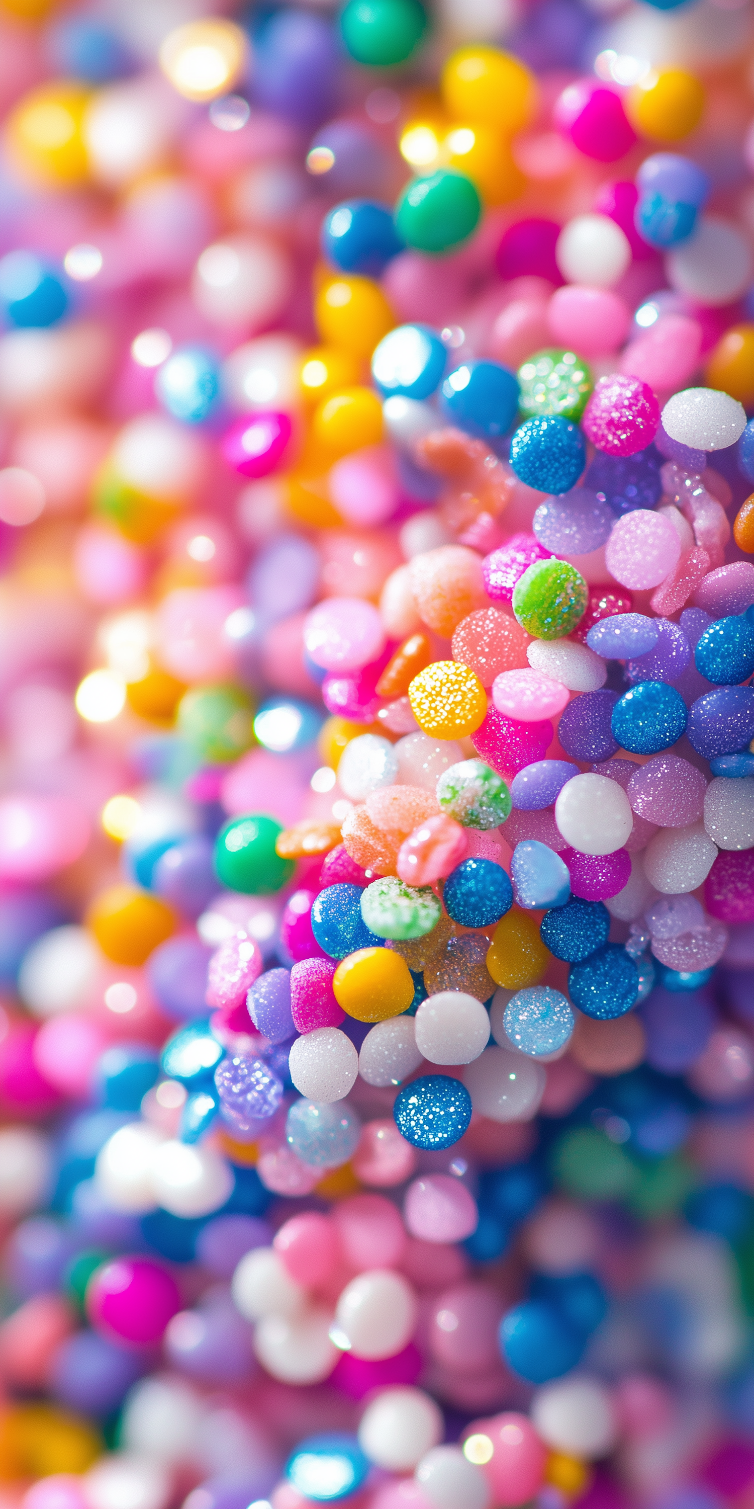 Bright and colorful close-up of candy sprinkles with glittery textures, creating a playful and vibrant visual treat.