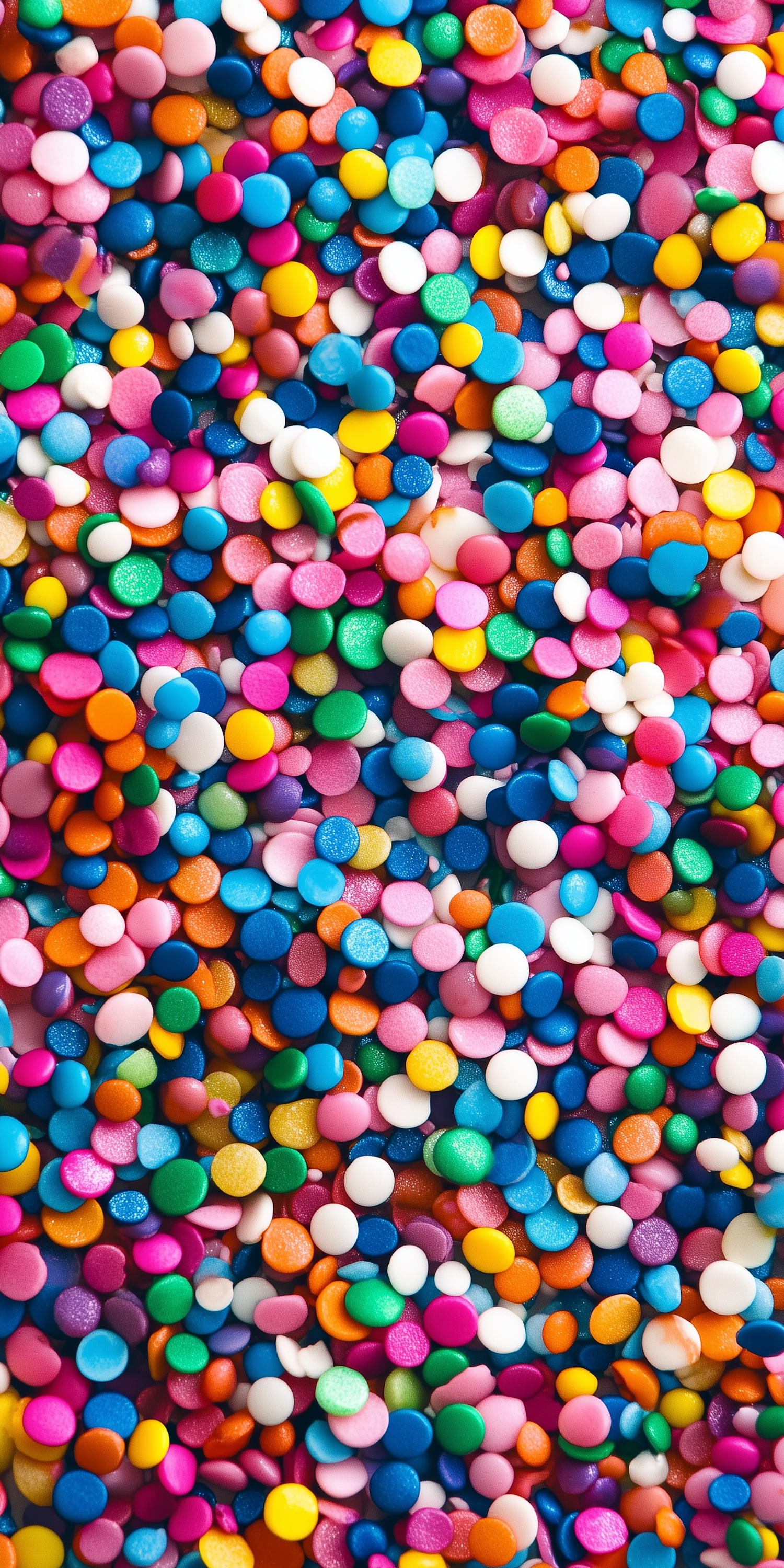Bright and colorful close-up of round candy sprinkles in various vibrant hues, perfect for adding a festive touch to desserts.