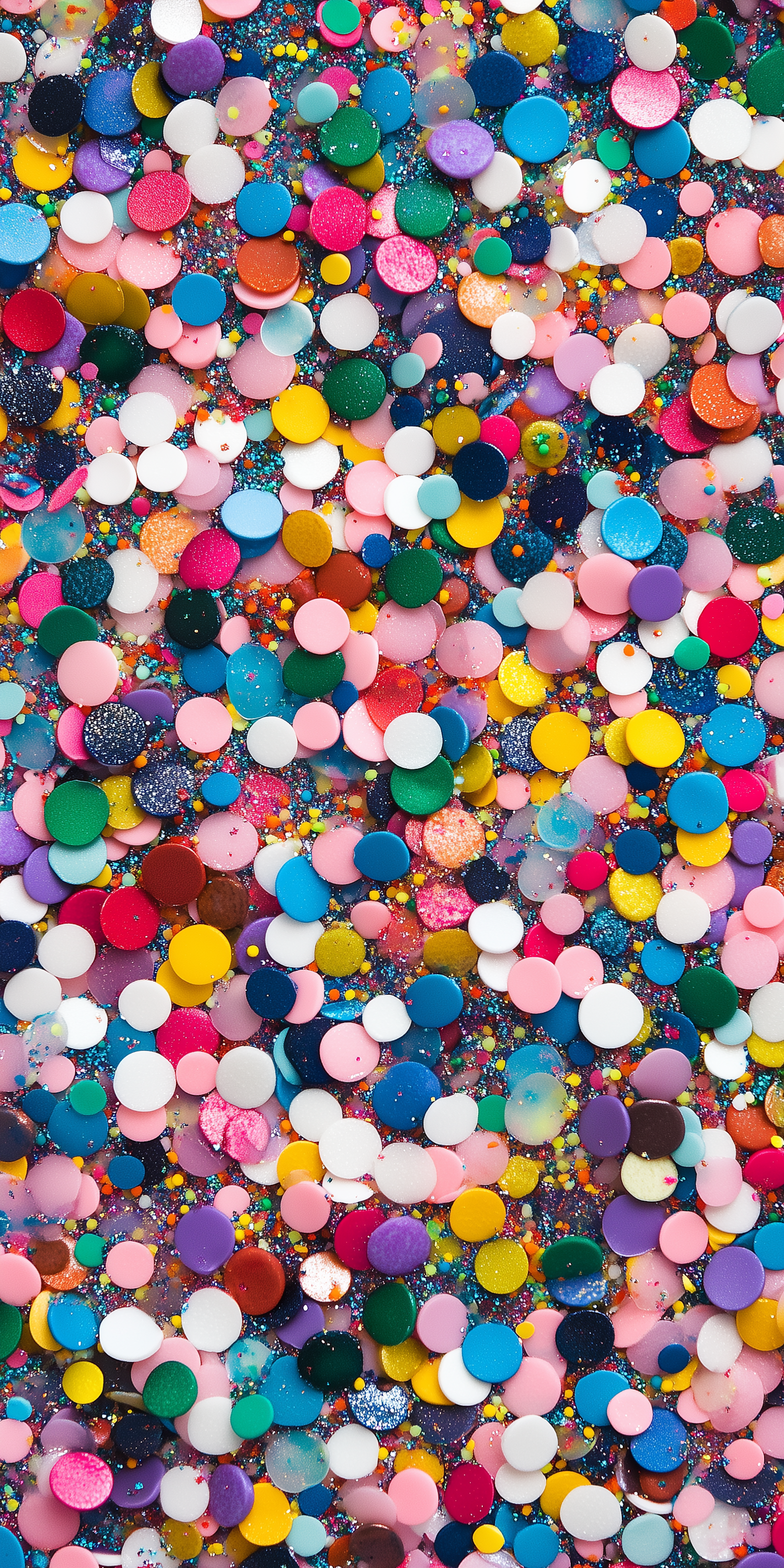 Bright and colorful confetti with glittery textures, creating a festive and lively vibe. Perfect for celebrations or party-themed designs.