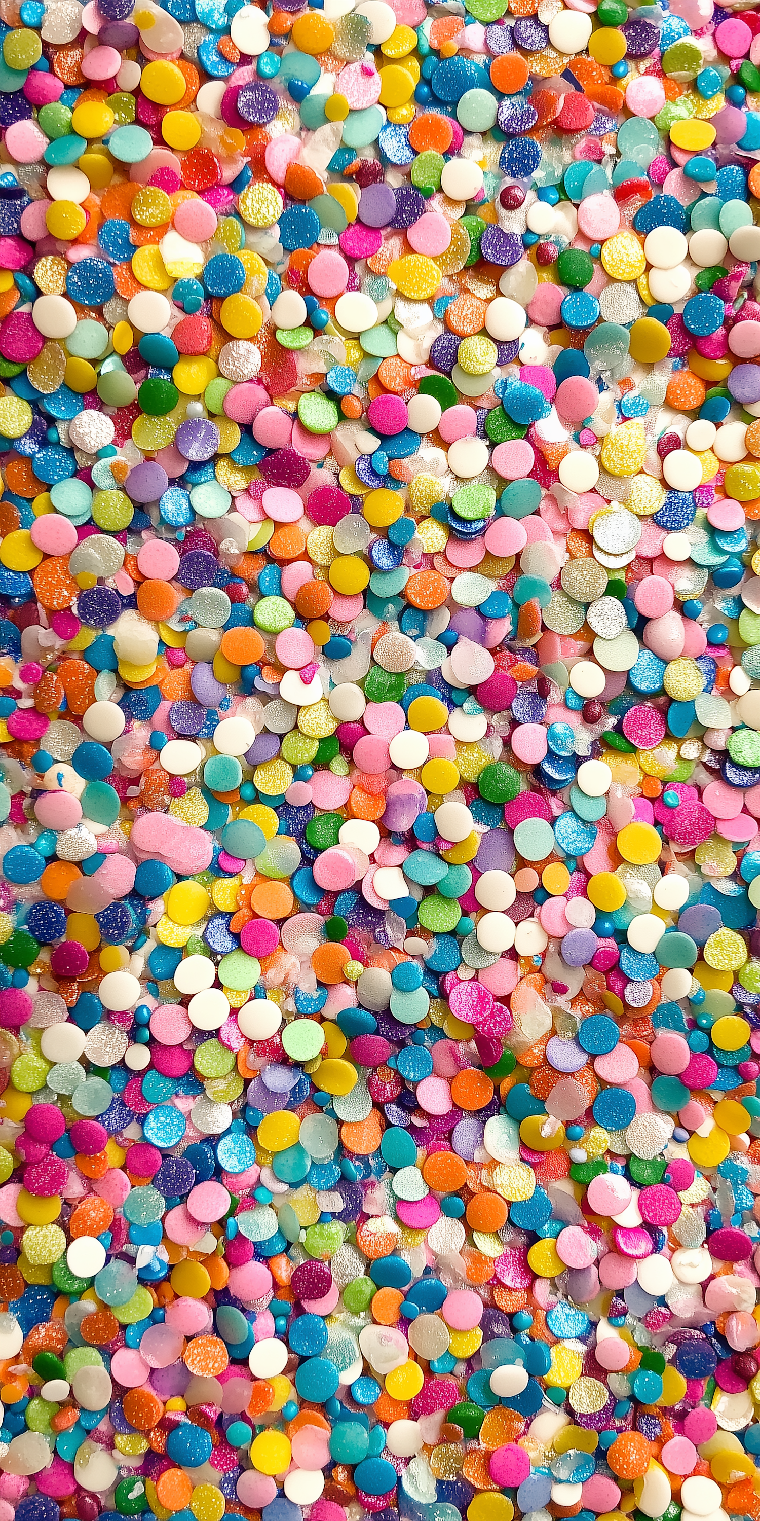 Bright and colorful confetti scattered in a random pattern, featuring glittery and metallic textures for a festive and fun vibe.