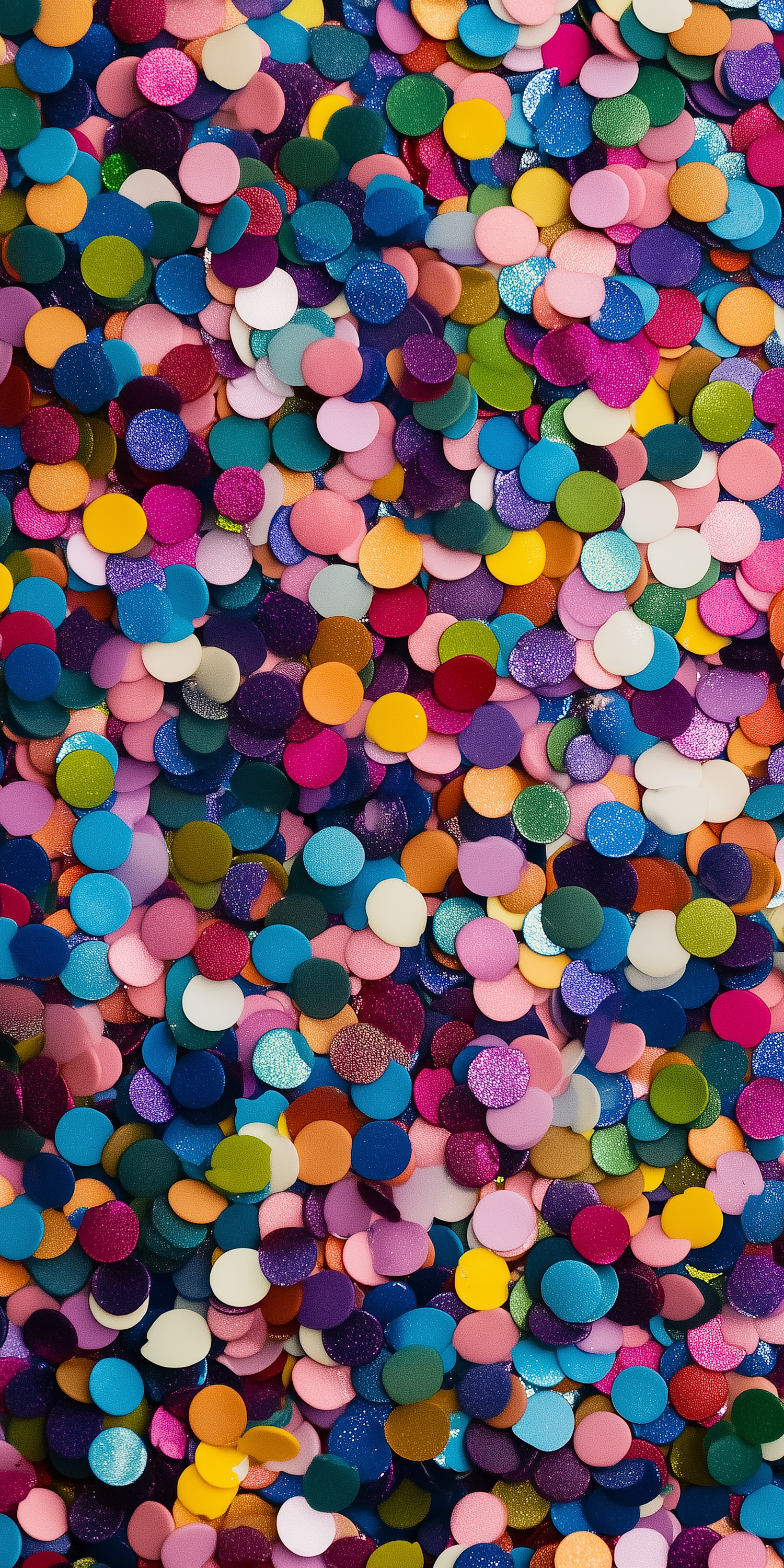 Bright and colorful confetti scattered in a random pattern, featuring glittery textures and vibrant hues for a festive and lively vibe.