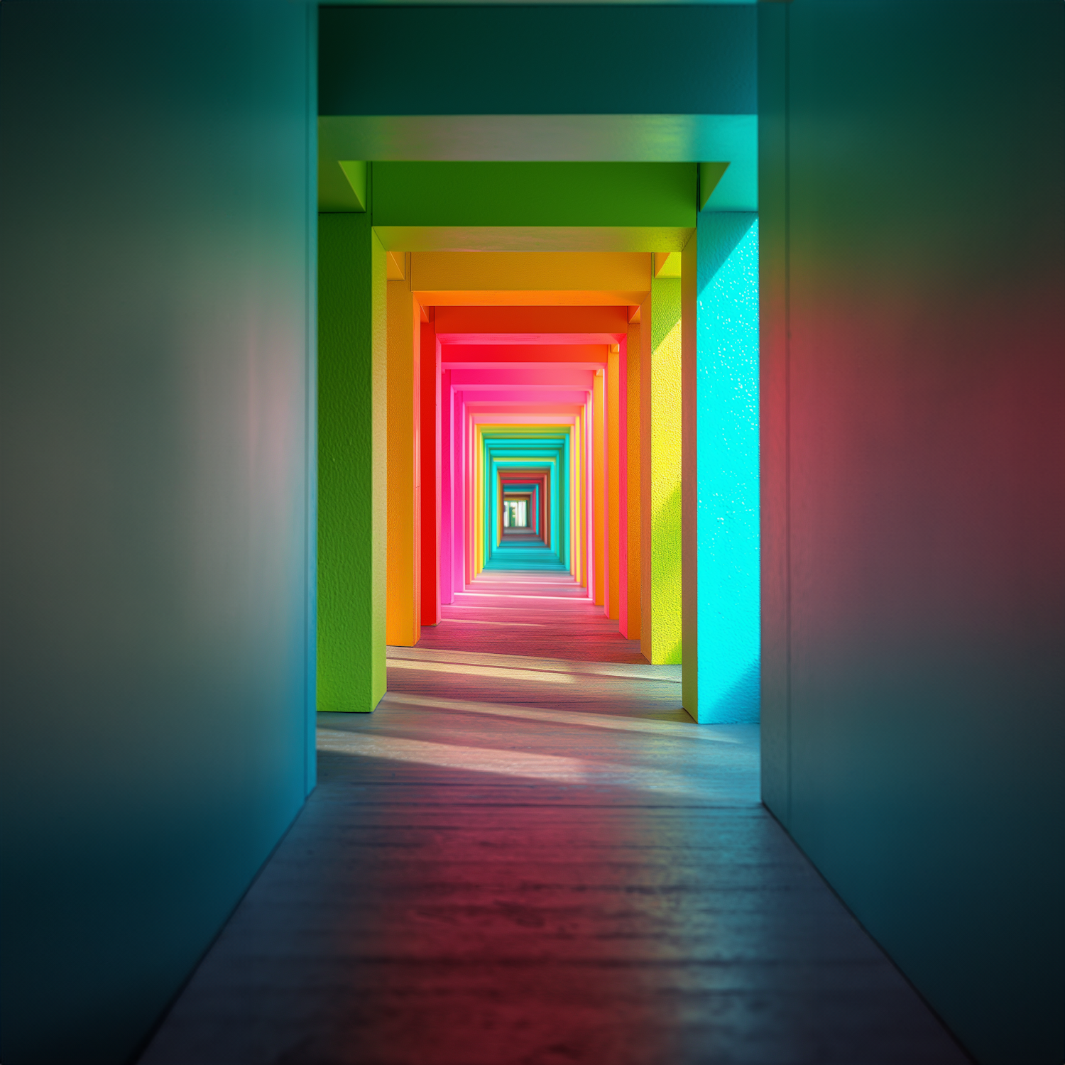 Explore a vibrant, colorful tunnel with a mesmerizing gradient effect, creating a sense of depth and infinity.
