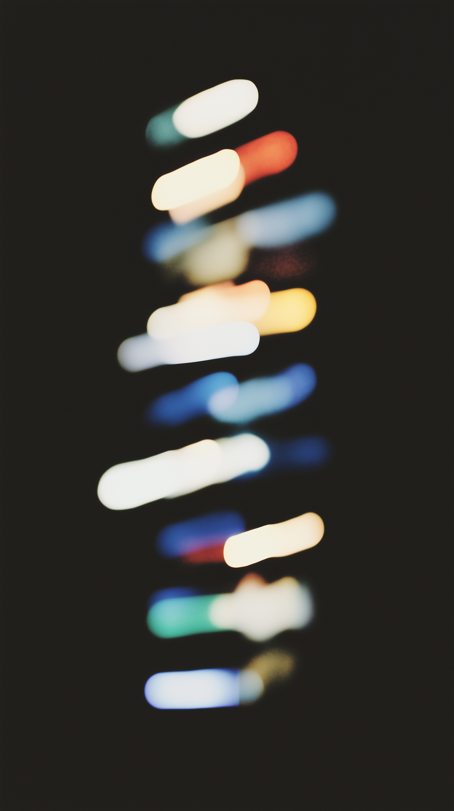 Abstract blurred colorful light streaks on a dark background, featuring vibrant hues of white, yellow, red, blue, and green.