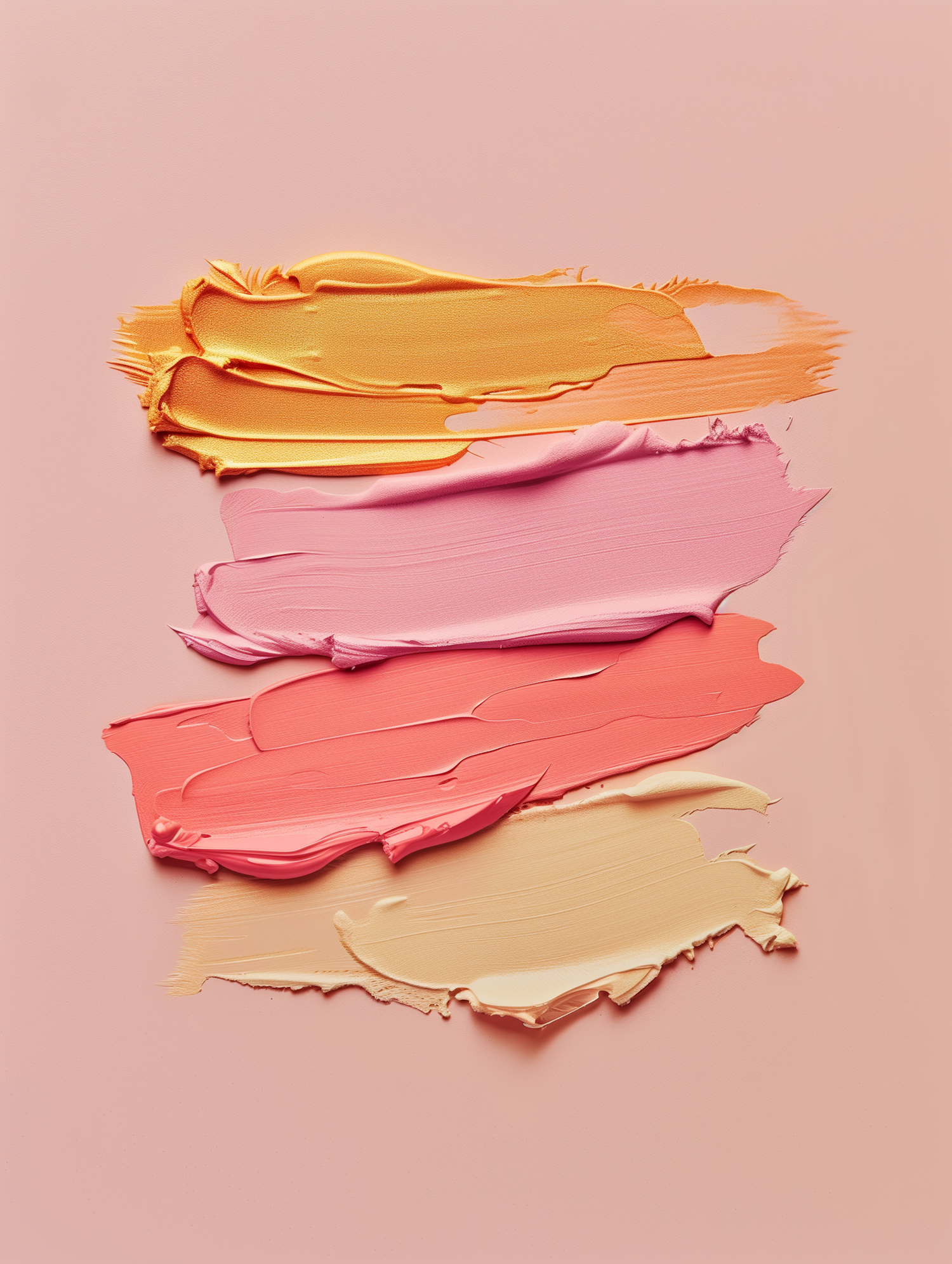 Vibrant strokes of orange, pink, coral, and yellow paint on a light pink background, creating a textured and colorful abstract design.