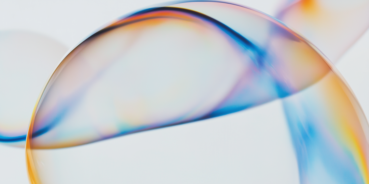 A close-up of a soap bubble with vibrant blue, orange, and purple hues, creating a mesmerizing abstract gradient effect.