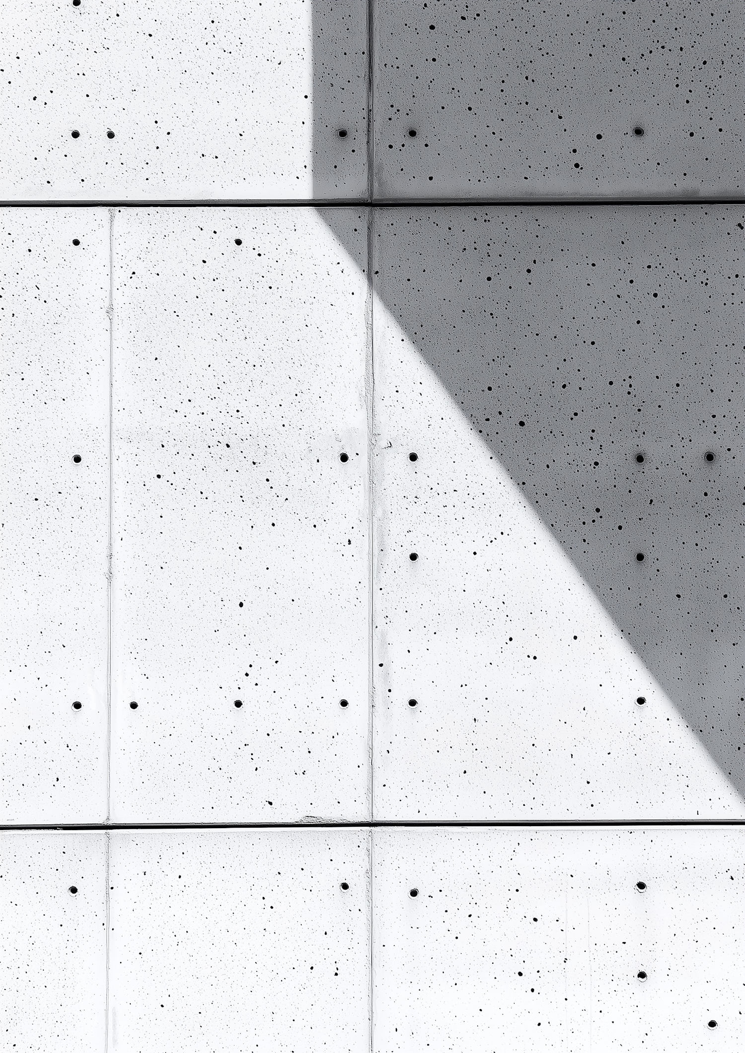 Minimalist concrete wall with geometric panels and striking diagonal shadow, creating a modern and clean aesthetic.