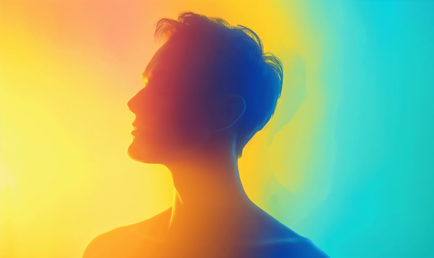 Silhouette of a person against a vibrant gradient background, blending warm and cool colors for a dramatic effect.