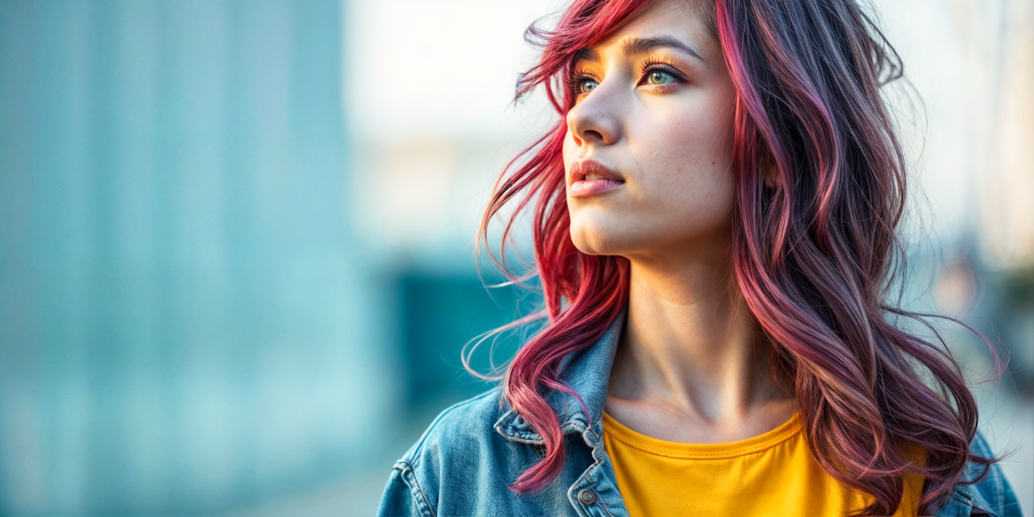 Contemplative Young Woman with Vibrant Hair