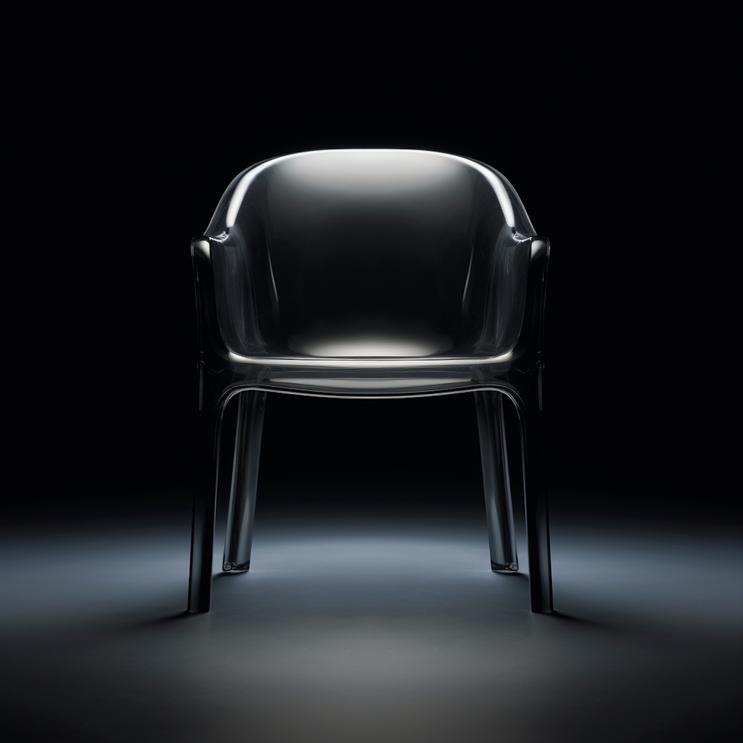 Sleek transparent chair with modern design, highlighted against a dark background, showcasing elegance and contemporary style.