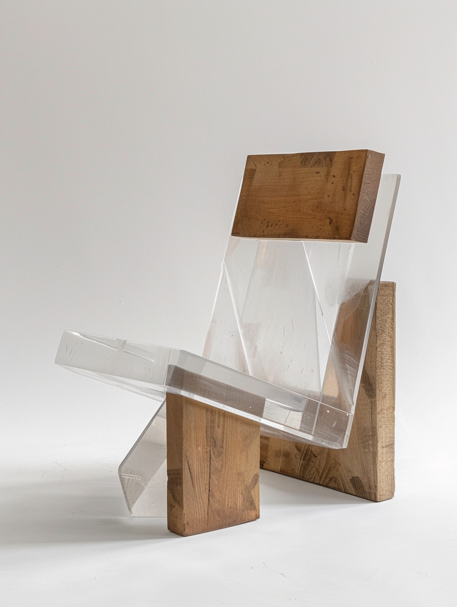 Modern chair with clear acrylic seat and wooden frame, blending sleek design with natural textures. Perfect for contemporary interiors.
