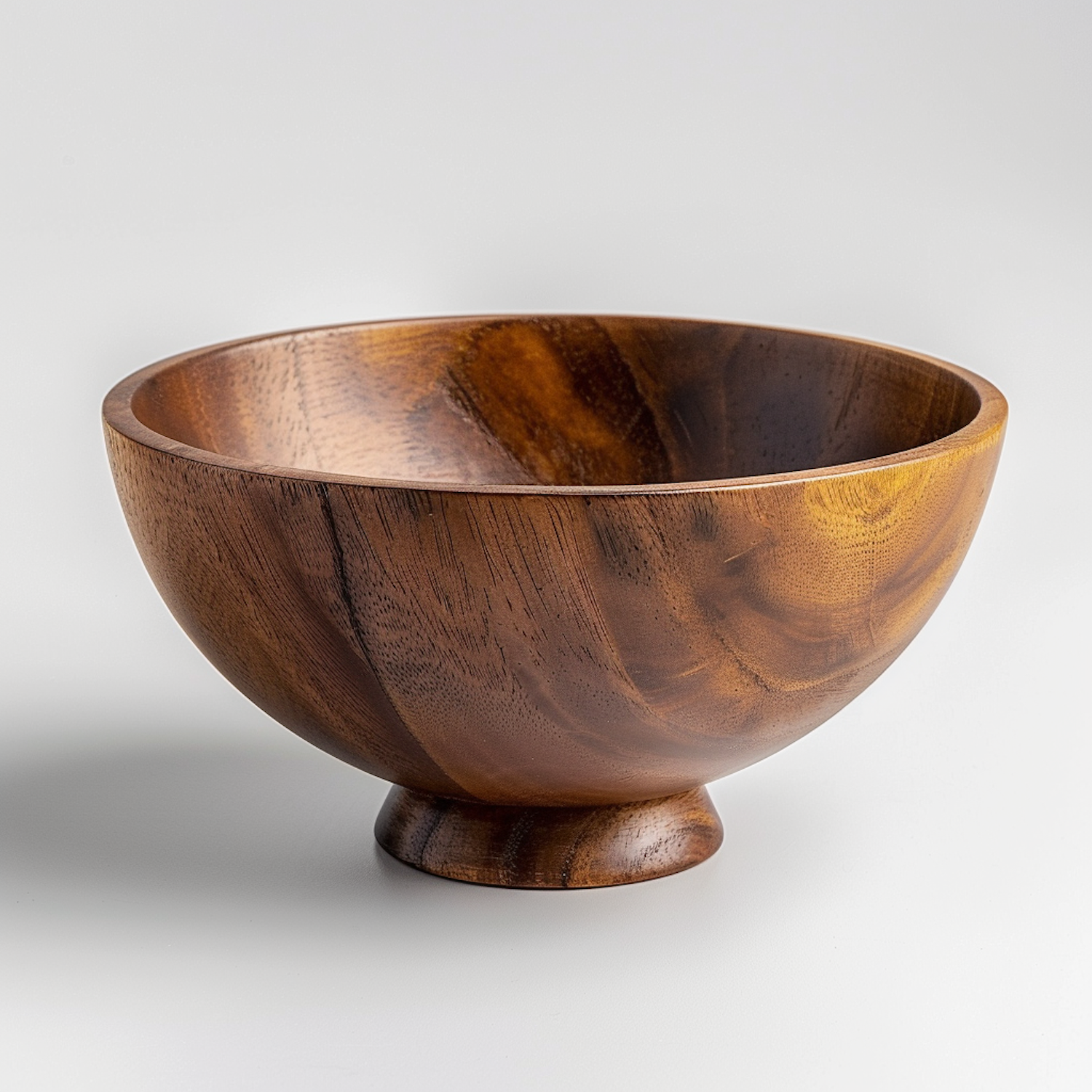 Elegant wooden bowl with rich brown tones and natural grain patterns, perfect for decor or serving. Simple yet sophisticated design.